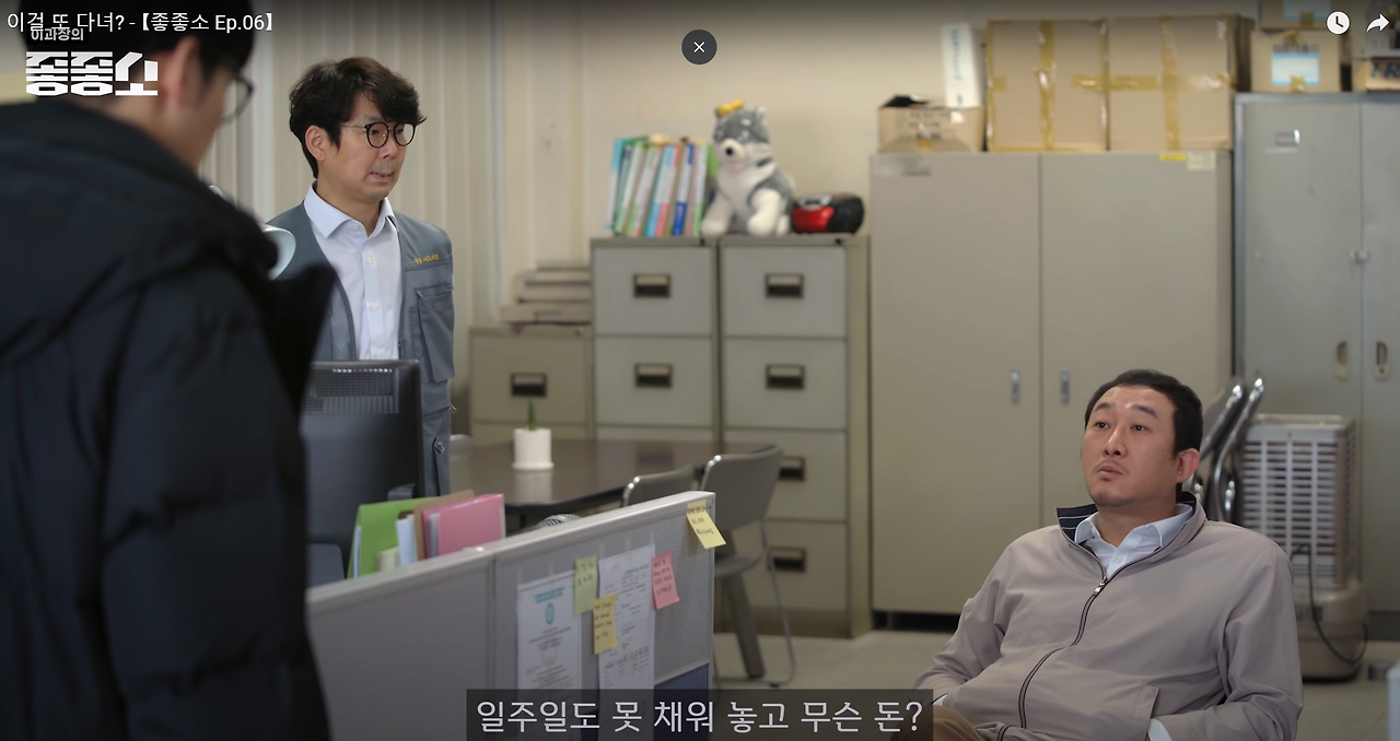 정승네트워크는 채용공고를 올렸고, '월급날이 지났다.'라는 조충범의 말에 사장은 '돈 받고 싶으면 직접 와서 받아' 라고 했습니다.
