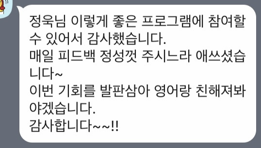 이 프로그램은 1:1로 개별적으로 진행해도 된다. 그럼에도 단톡방을 만든 이유는 그 안에서 영어에 대한 고민과 질문을 나누고 소통하기 위해서였다.