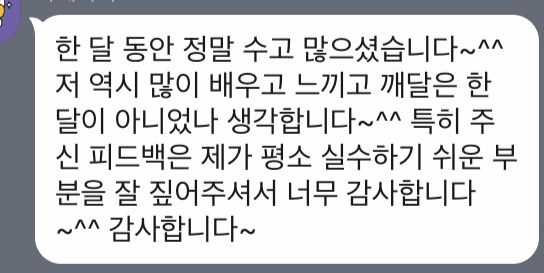 이번 영어모임은 소규모이기도 하고 매일 1:1 대화가 오가는, 비교적 밀착적인 관계였다. 그래서 멤버들이 개별적으로 케어받는다는 느낌을 주기 위해 노력했다.