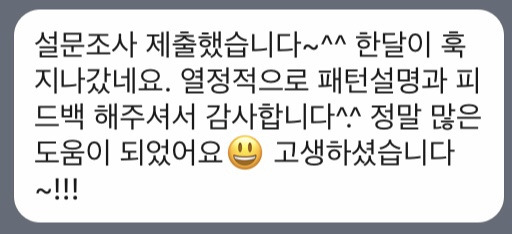 질문은 언제든 편하게 하시라고 말씀드렸지만 단톡방에서 많은 대화가 이루어지지는 않았다. 무엇을 질문해야 할지 막연했을 수도 있고, 너무 바빠서 대화할 시간이 없었을 수도 있다.