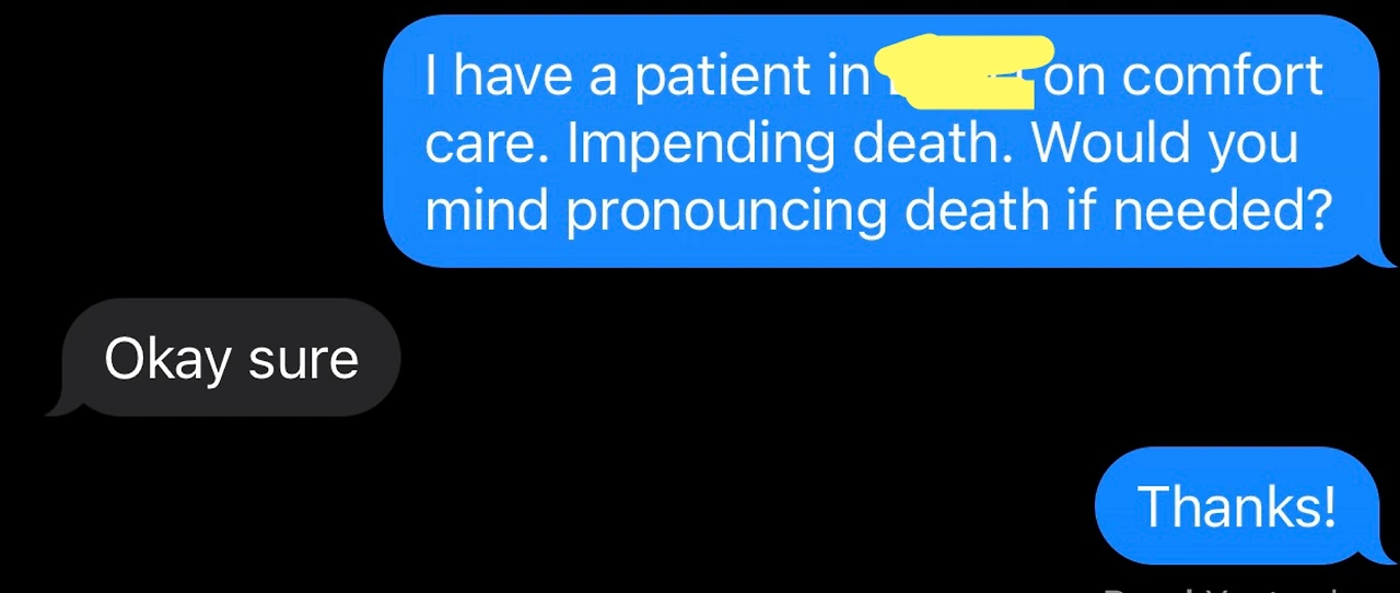 나는 동료 의사에게 짧은 인계 문자를 남겼다.
