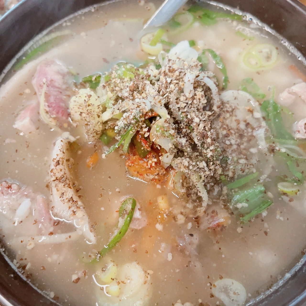이름처럼 이 집은 찹쌀순대가 전문이다. 게다가 애초에 국물에 밥을 말아주신다. 뚝배기에 순댓국에 밥을 넣어 토렴 한다. 다대기까지 얹은 후, 숟가락까지 탁 꽂아서 주신다. 그래서 테이블엔 숟가락이 없다. 내가 먹는 방식과 완전 다르다. 고민이 되었지만, 나또 님이 하도 추천하기에 지난여름에 직접 가 봤다.
