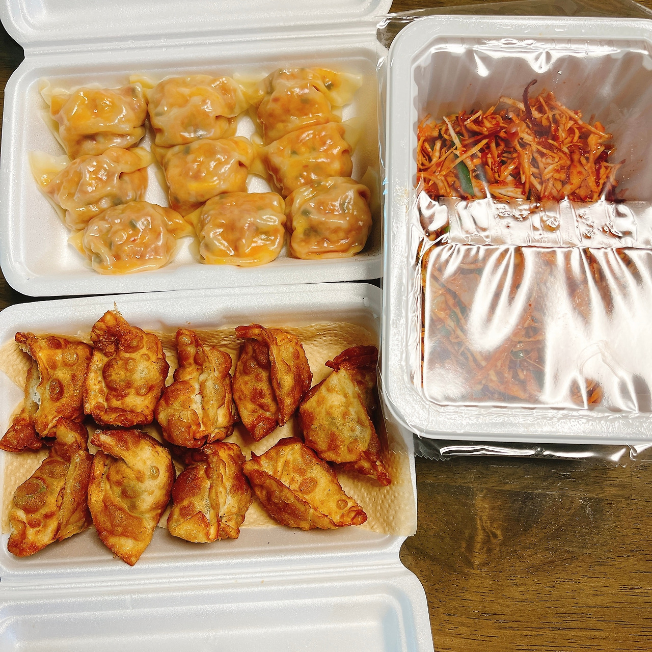 피가 얇고 투명해서 속이 다 비치는 통만두는 나물이와 까꿍이의 입맛에 맞았다. 칼칼한 김치만두는 어른들의 취향을 저격했다. 까꿍이는 튀김만두도 좋아했다. 튀김만두만 먹는 까꿍이와 달리, 나물이는 야채 비빔에도 도전했는데, 새콤해서 맛있다고 좋아했다. 여전한 나의 원픽은 왕만두였다.