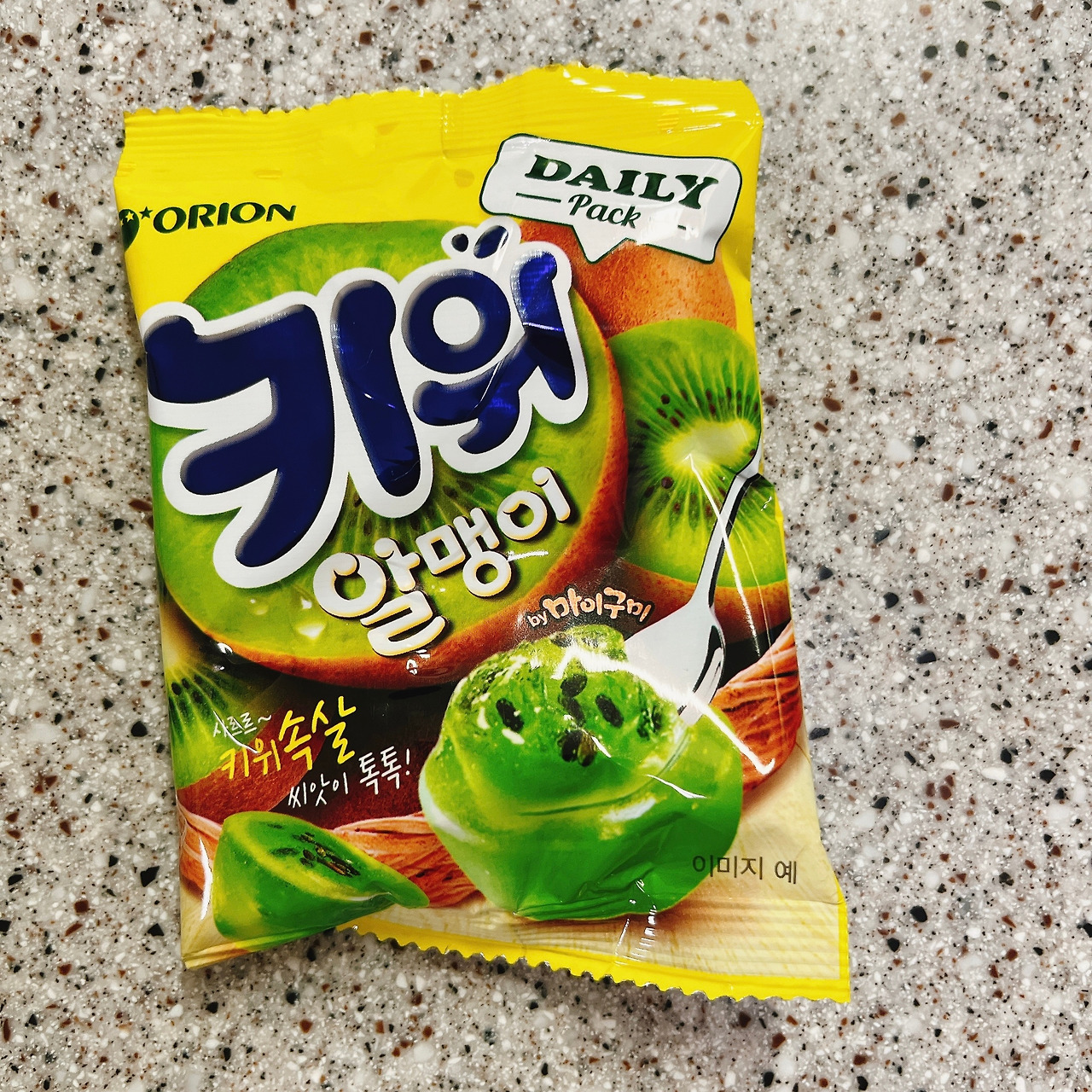 7. 총평: 아 기다리고 기다리던 키위 알맹이다. 역시 기다린 보람이 있다. 나물이는 완전 합격, 짱이라며 계속 먹는다. 까꿍이도 정말 맛있단다. 나도 진짜 맛있게 먹었다. 특히 속 알맹이가 키위의 식감 그대로다. 치아시드를 이용해서 키위 씨까지 제대로 구현했다. 새콤하면서 약간 아린 맛까지 제대로 키위다. 새콤달콤한 젤리를 좋아하는 아이들과 나의 취향을 제대로 저격했다.
