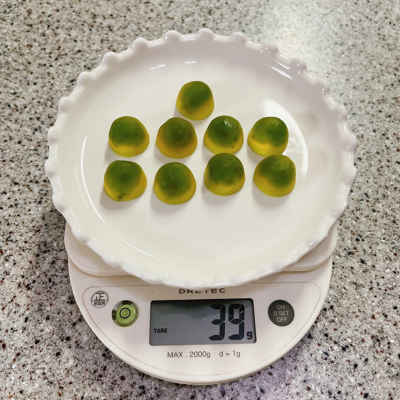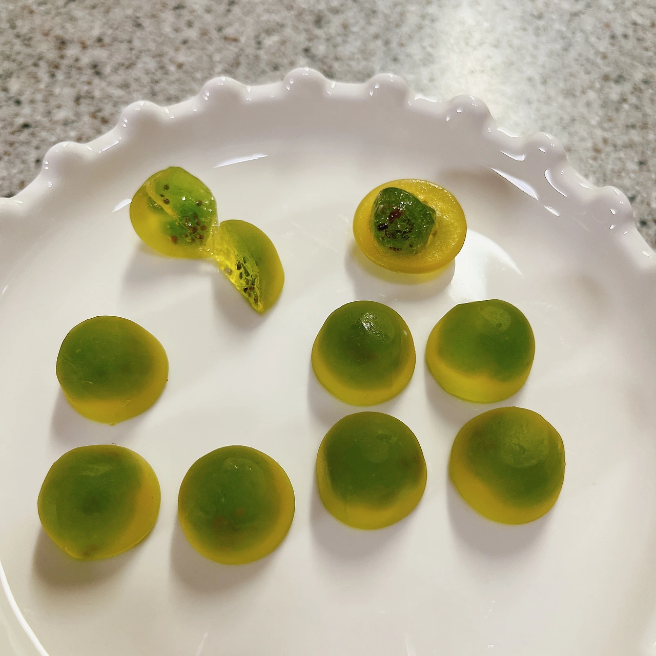 5. 냄새: 향이 강하진 않다. 젤리를 코에 가져다 대고 킁킁거려야 키위 향이 난다.