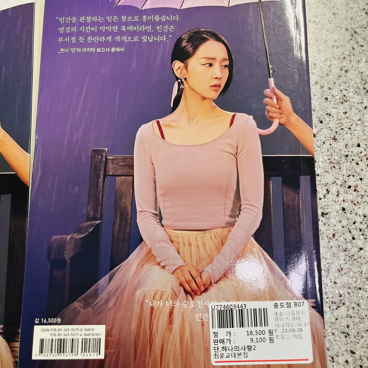 절대로 원가 이상을 주고 중고 대본집을 구매하지 않는다는 나름의 철칙이 있다. 차라리 안 보고 말지. 그런데 이건 너무 끌린다. 게다가 책 모양이 독특하다. 진짜 대본집처럼 가로로 길다. 편찬도 CJ E&M이다.
