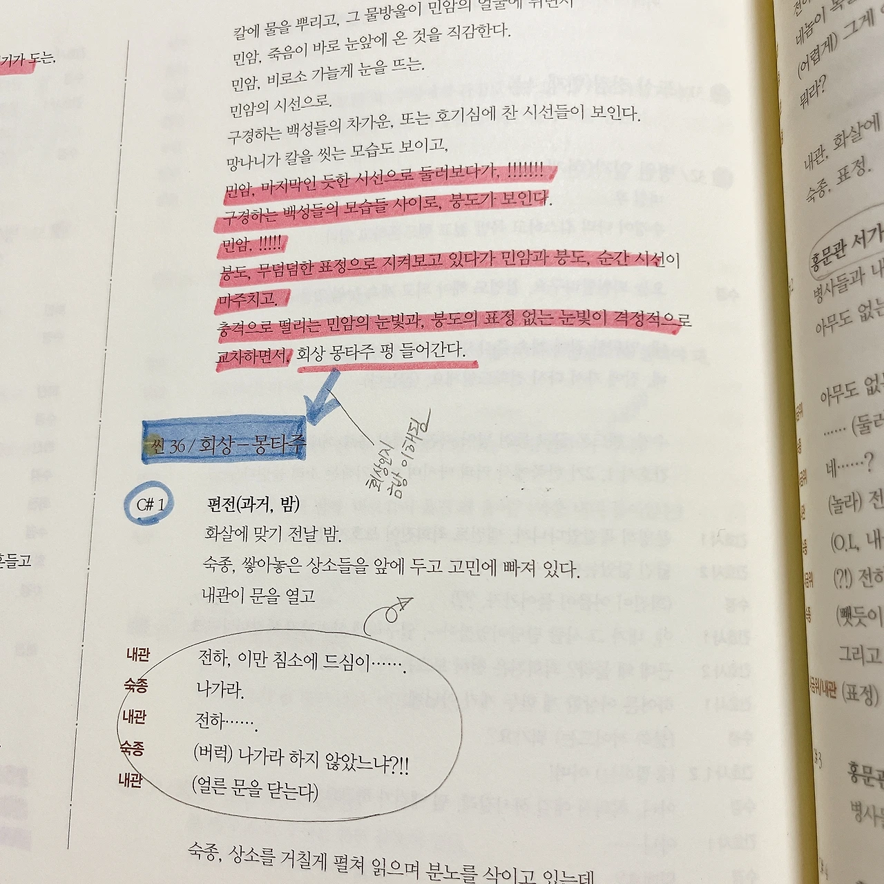 글씨가 보일락 말락 하는 형광펜 줄 긋기는 예사다. 온갖 화살표와 알 수 없는 메모가 가득하다. 극본을 전공하는 대학원생이 봤으려나? 아님 드라마 작가 지망생? 하. 최상으로 구입할걸. 아니, 그게 뭐라고. 인현왕후의 남자가 뭐라고. 참을걸. 갑자기 읽기 싫어진다.