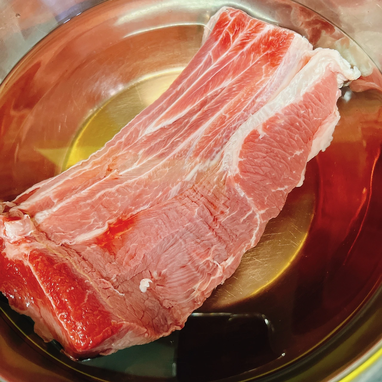 이날 저녁 메뉴는 고기구이라, 특별히 할 건 없다. 일단 장조림에 집중한다. 30분쯤 지나 핏물이 빠진 고기와 손질한 야채, 통후추를 큰 냄비에 넣는다. 그리고 물을 1,600ml 붓는다. 팔팔 센 불에 끓인다. 끓어오르면, 불순물을 걷어내고 중 약불로 줄여서, 1시간 정도 푹 끓인다.
