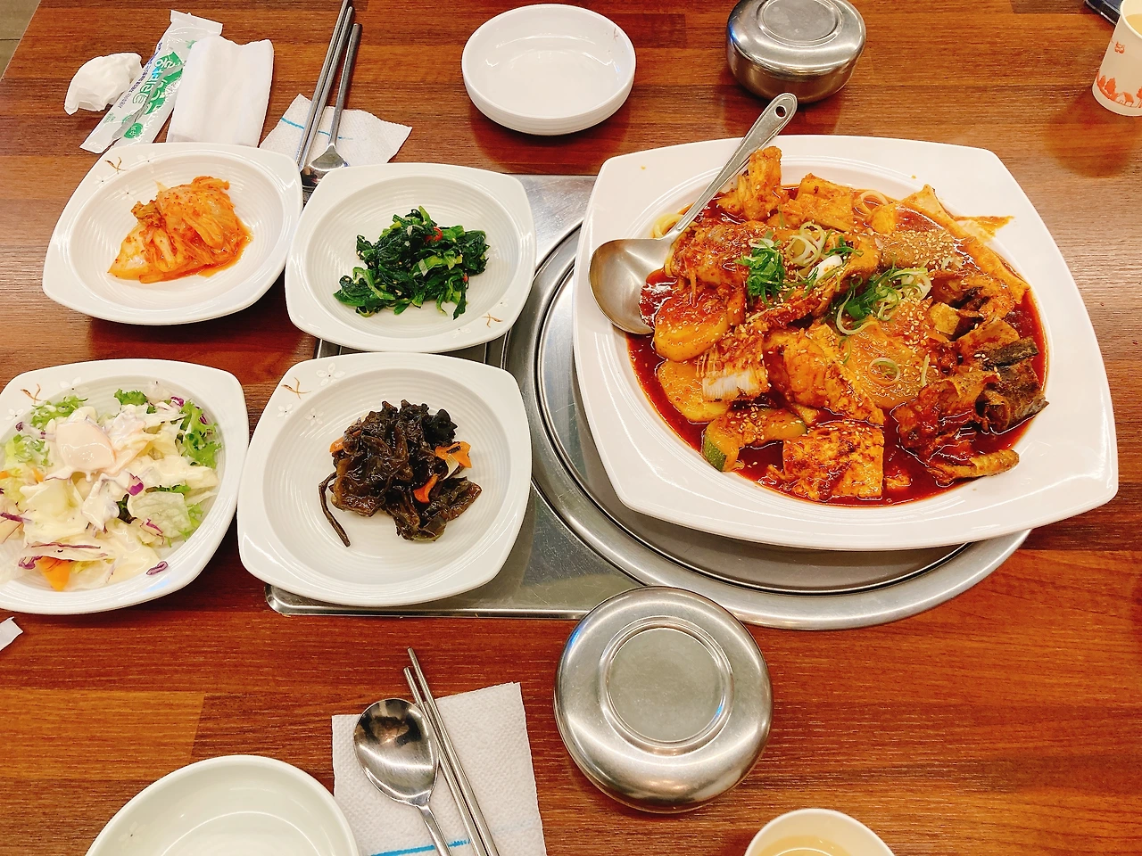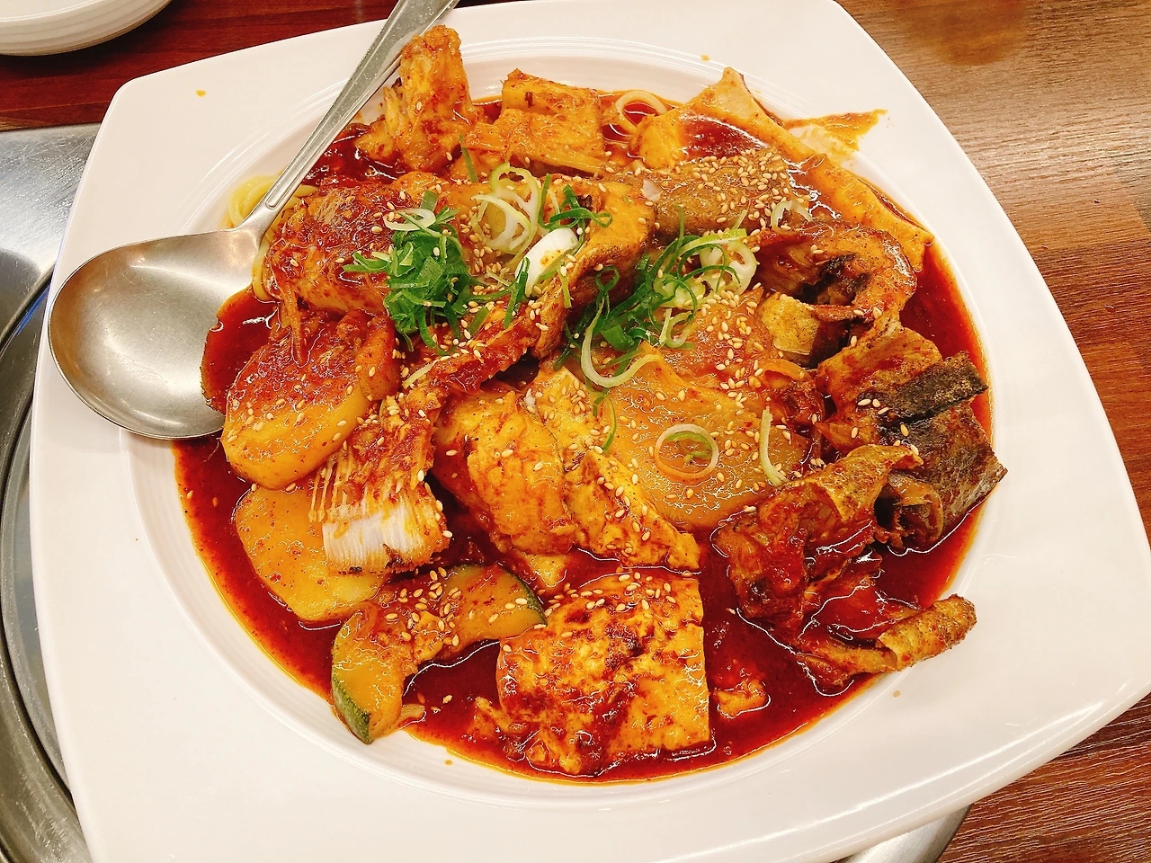 기다리던 모둠 생선조림과 육원전이 나온다. 생선조림은 정말이지 양념이 끝내준다. 생선도 진짜 비린내가 하나도 느껴지지 않는다. 생선 살의 식감도 좋다. 푸석거리지 않고 생선 살이 단단하게 잘 씹힌다. 조림에 들어있는 야채도 하나같이 다 맛있다. 일단 양념이 맛있으니 다 맛있나 보다.
