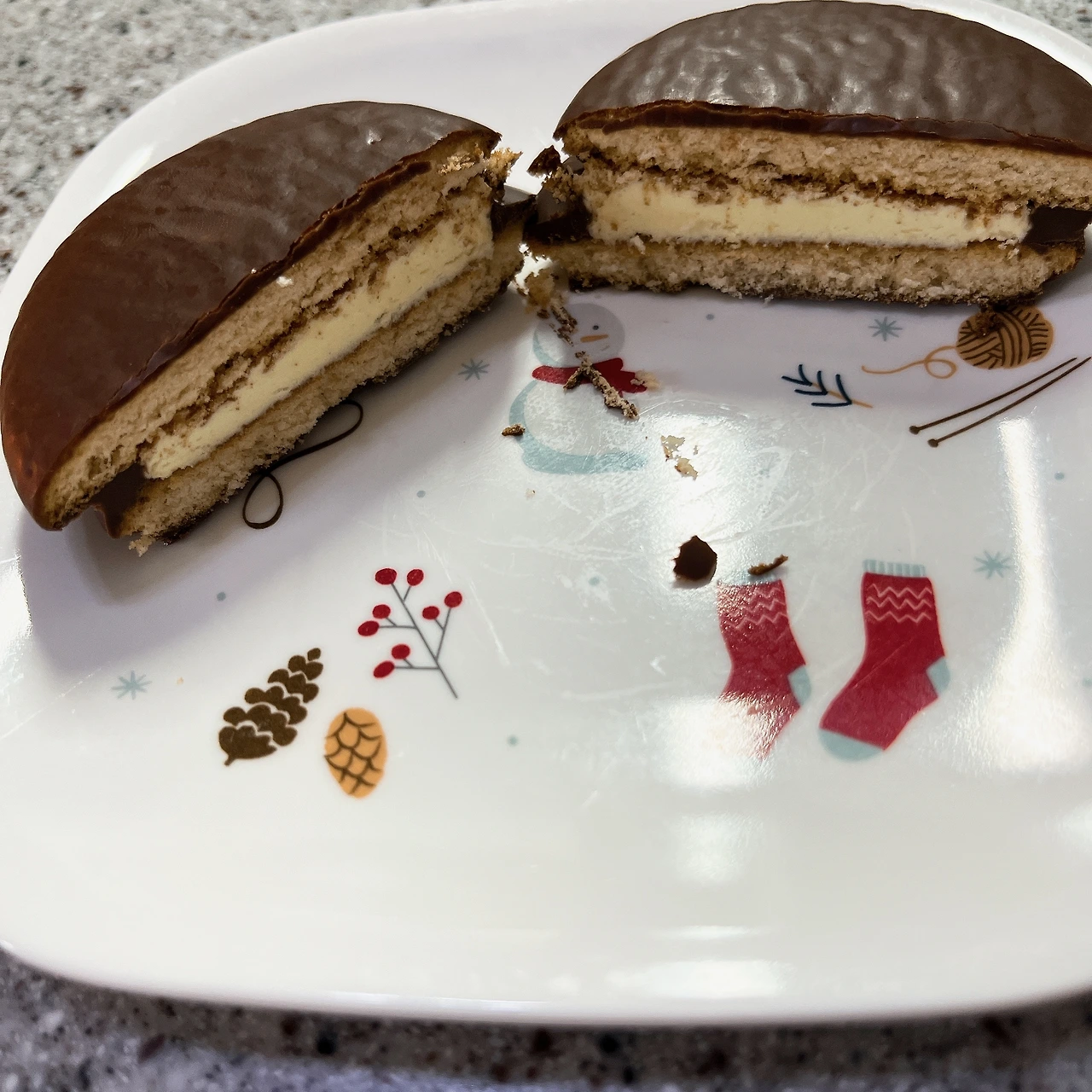 4. 모양: 초코파이 모양이다. 단면 역시 초코파이와 비슷하다. 크림이 조금 더 묽은 느낌이 들고, 색이 누르스름한 것이 다른 점이다.