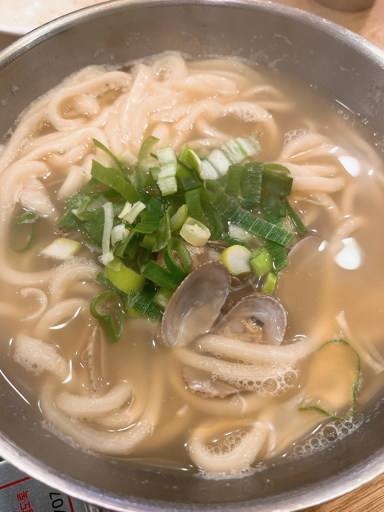 칼국수는 바지락 칼국수다. 다만 면을 직접 매장에서 뽑으셔서 그런지, 일반 칼국수 면과는 다르다. 가락국수 느낌도 나고, 다소 두툼하다. 까꿍이 말로는 자기가 기대한 면은 아니란다. 면이 굵어서 간이 잘 배지를 않고, 밀가루 맛이 좀 난단다. 그녀는 불호(不好)지만, 나는 매우 호호호(好好好)다.