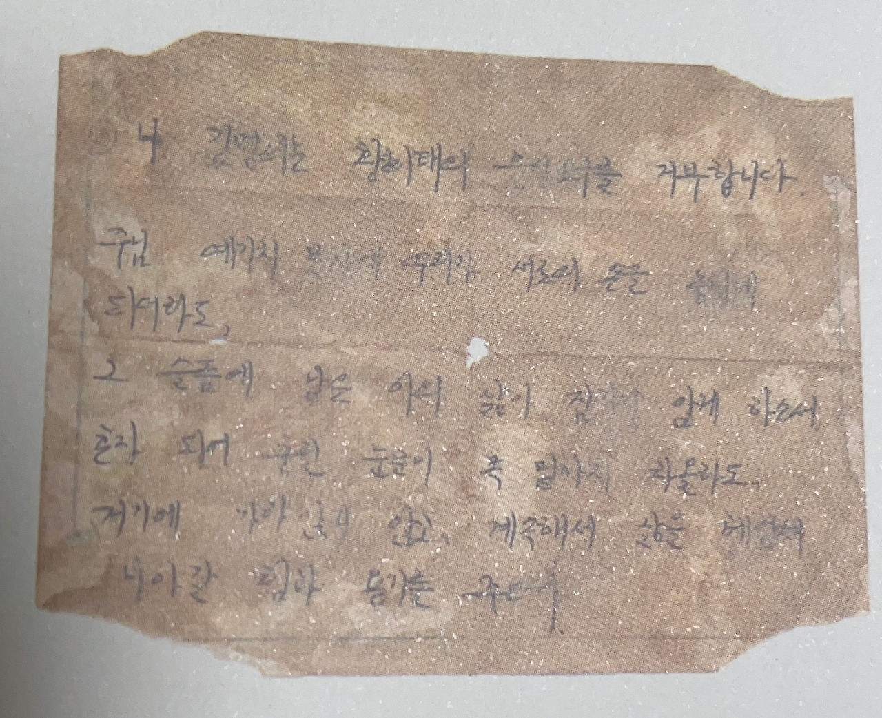 대본집을 보는 이유 중의 하나는 그 편지 내용을 활자로 확인할 수 있다는 먹먹함 때문이었다. 배우들의 훌륭한 내레이션도 참 좋지만, 찍어낸 듯한 활자 속에 느껴지는 그 담담한 슬픔이 때론 더 마음을 두드리곤 한다. 게다가 오월의 청춘 대본집은 드라마에서 소품으로 썼던 편지를 뒤쪽에 실어 놓았다. 희태가 쓴 편지와 명희가 썼던 서약서 조각을 시각적으로, 활자로 마주하며 느끼는 감정은 더더욱 이 이야기를 심상하게 느끼게 했다.