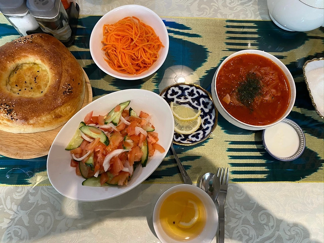 이후, 선생님과 함께 종종 그곳에 있는 식당들을 다니며 우즈베키스탄 전통음식이나 고려인들이 즐겨 먹는 음식을 맛보게 되었다. 토마토 스튜에 우동 사리를 넣은 라그만(Лагман), 고려인들이 주로 즐겨먹는다는 냉면 느낌의 국시(кукси), 꼬치구이의 일종인 샤슬릭(шашлык) 등이었다. 생각보다 입에도 잘 맞고, 맛있었다.