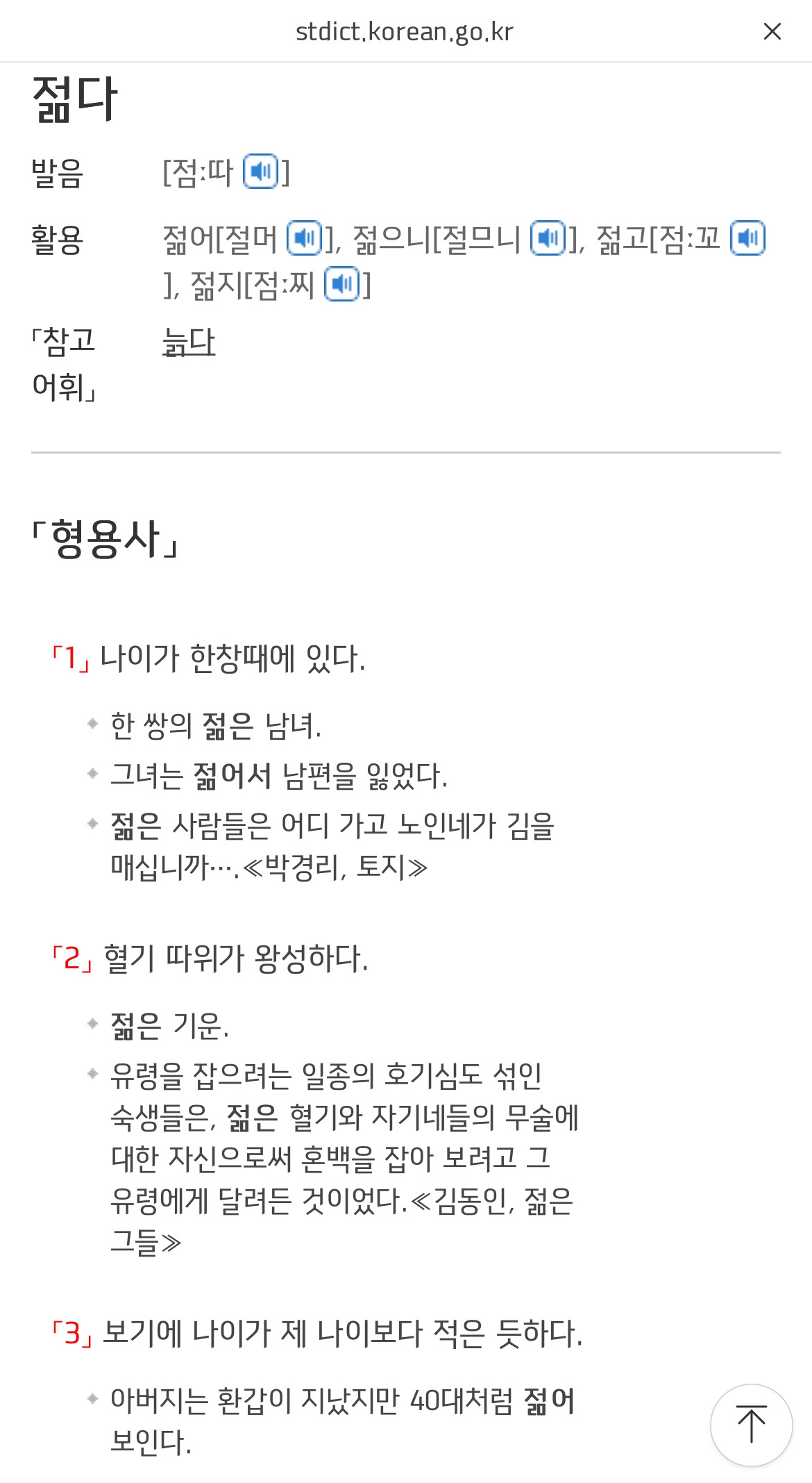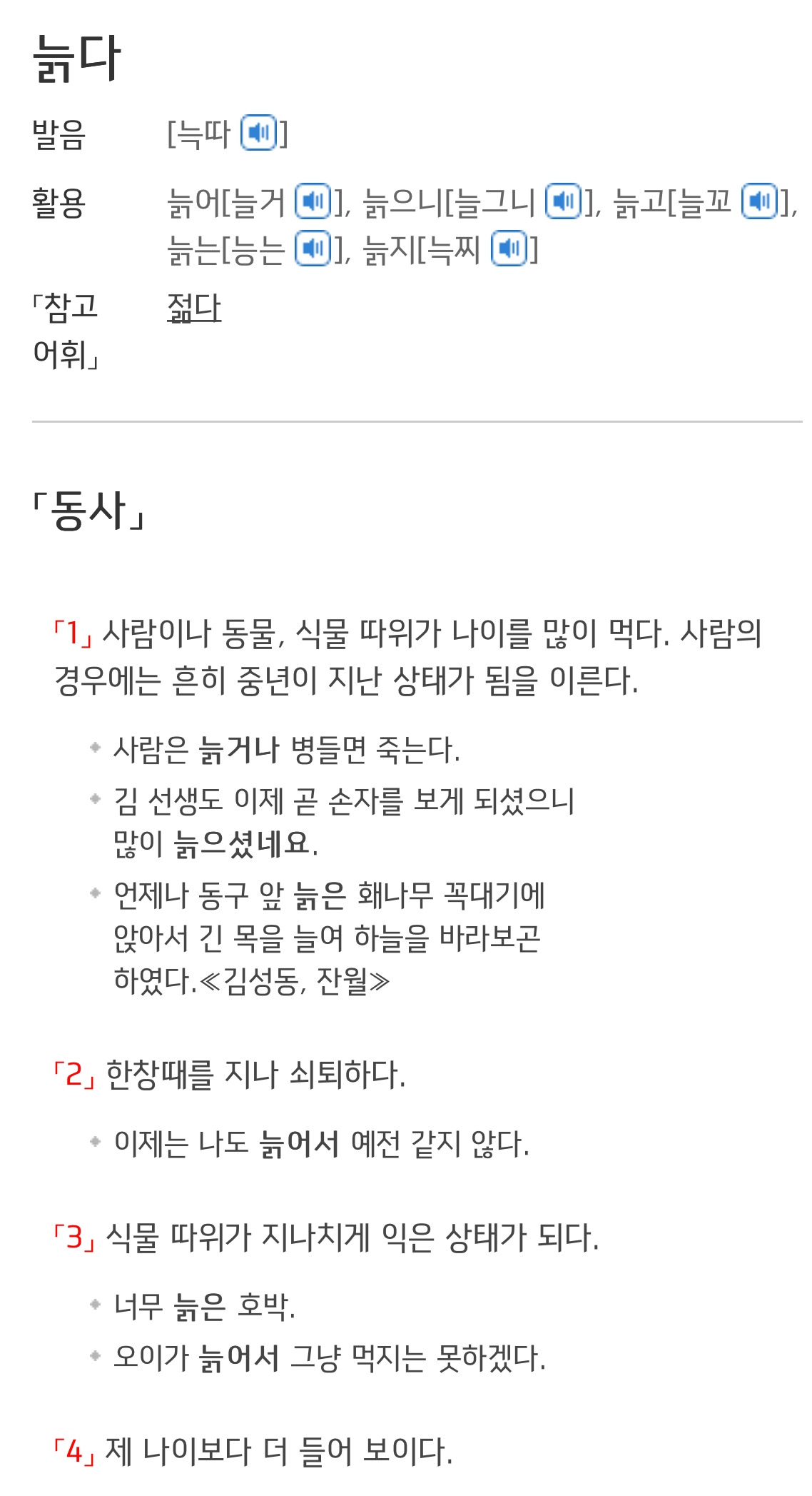 ‘젊다’는 단어와 ‘늙다’라는 단어를 표준국어대사전에서 찾아보면, 참 재미있는 사실 하나를 발견할 수 있다. 우리는 막연히 두 단어가 서로 반의 관계에 있는 반의어라고 생각하며, 둘 다 형용사, 혹은 동사라고 생각할지도 모르겠다.