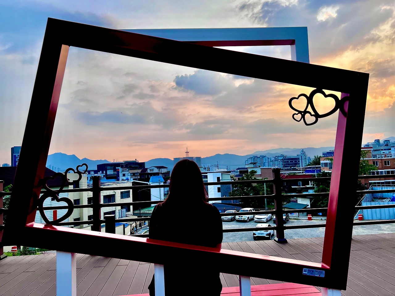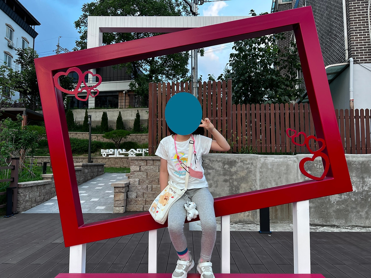 같이 갔던 까꿍이에게 여기가 엄마가 살았던 집이라며, 설명해 주곤 예쁜 의자에 앉아서 함께 사진도 찍었다. 그리고 올해 휴가에 또다시 그 집을 찾았다. 올해는 그 데크 뒤로, 커뮤니티 돌봄 센터가 생겼다. 뒤늦게 찾아보니, ‘봉의산 비탈마을의 반란’이란 주제 아래 만들어진 건물이란다. ‘교동 보물섬’ 사업의 일환이라나?! 내가 살던 그 집이, 더 이상 내가 알던 그 집이 아니게 됐다.