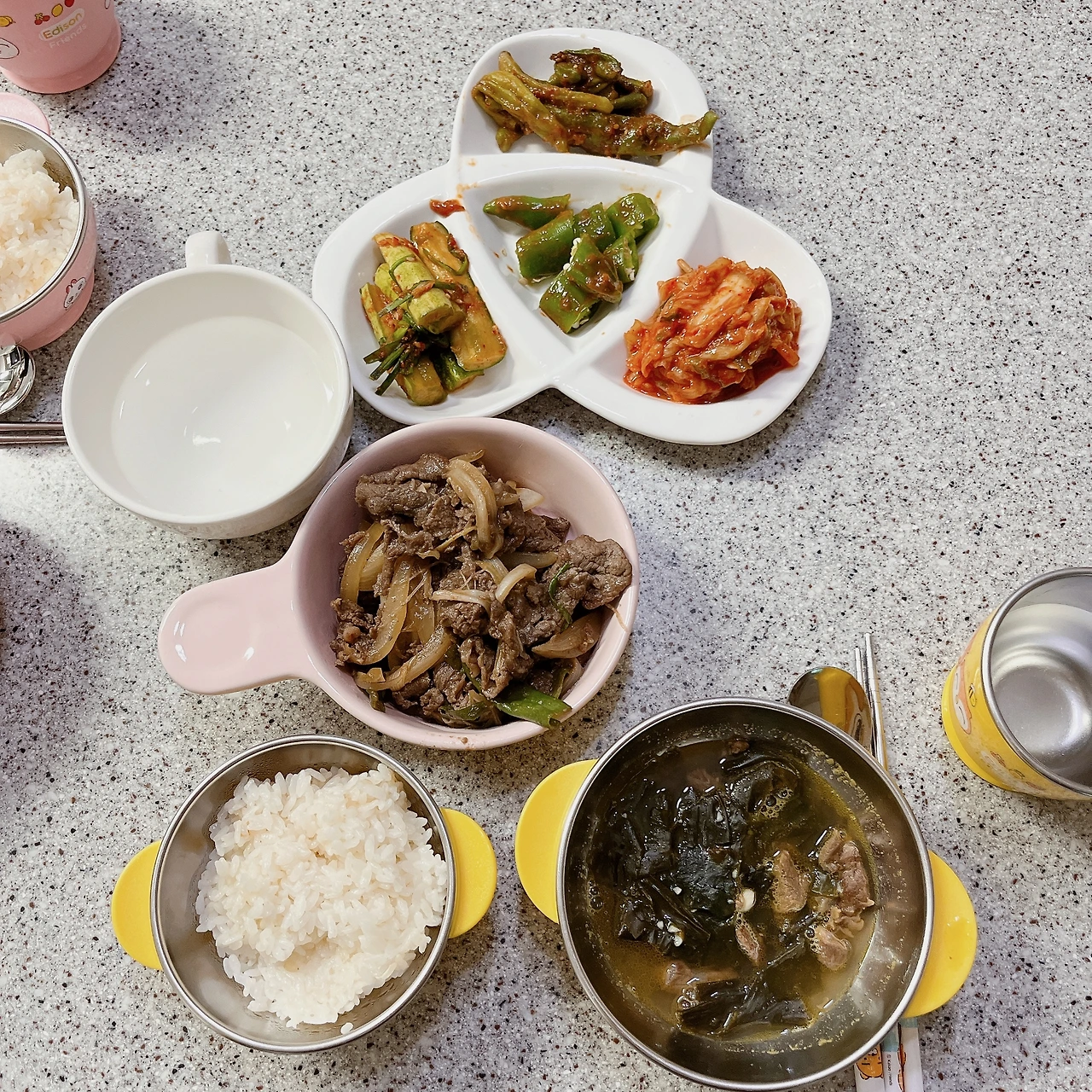 폭풍 같은 잔소리가 쏟아진다. 엄마랑 2학기에는 매일 수학과 사회 문제집을 풀기로 했는데 왜 풀지 않는 것인지, 15개나 맞은 게 아니라, 5개나 틀린 거라고. 15개만 맞은 거라고. 다다다다 쏟아내다가 보니 눈앞에 미역국이 보인다.