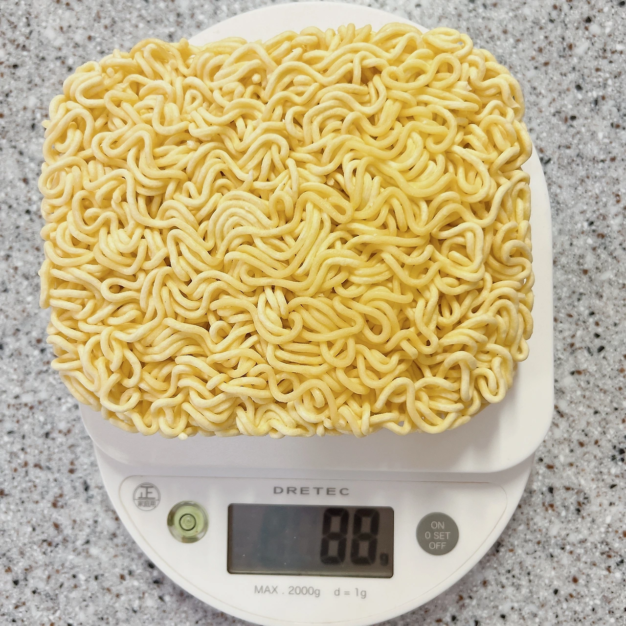 2. 중량: 라면 1개 88g 내외 × 8개, 분말수프 및 건더기수프 (포장지 포함) 95g.