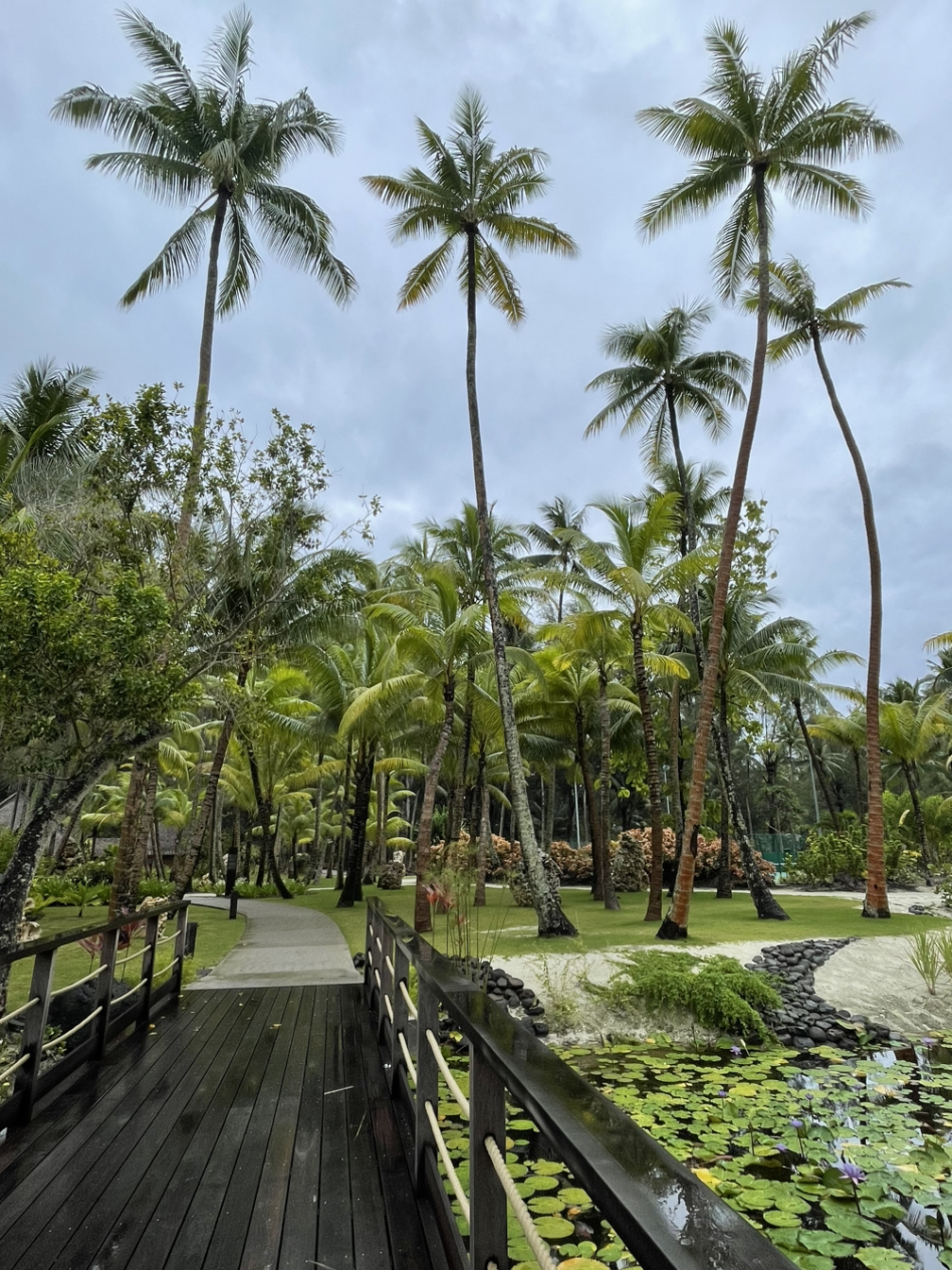 사진 촬영을 마치자, 보라보라에서 꼭 해야 할 임무를 마침내 완수한 홀가분한 기분이 되었다. 가벼운 마음으로 수영장 옆에 위치한 미키미키 레스토랑에서 점심을 먹었다. 참치 회가 이 집에서 제일 맛있는 것 같다. 참기름 향이 솔솔 나는 것이 사이드로 주는 밥과 함께 먹는 그 맛이 별미였다. 함께 곁들이는 히나노 앰버 맥주가 아주 딱이다. 점심을 먹고, 리조트를 어슬렁거렸다. 맑은 날의 보라보라를 잘 기억해두고 싶어서 주위를 잘 둘러보며 천천히 걸었다. 알록달록 카누가 잘 보이는 해변의 선베드에도 누워있고, 상점들도 다 들어가 보고, 정원 길과 수상 방갈로 길도 걸었다. 리조트 내를 누비며 서비스하는 모양과 색깔이 조금씩 다른 자전거도 기억에 담고, 해변에 놓여있는 로맨틱 디너 차림도 기억에 담았다.