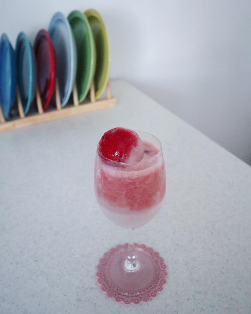 문득 몇 주 전 남편에게 만들어준 딸기 바나나주스의 얼음 속 딸기가 생각났다.