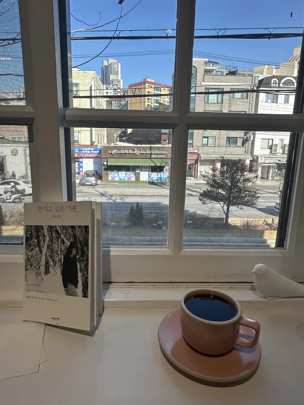 한성대 입구역 5번 출구에서 느린 걸음으로 10분쯤 가면 보이는 오래된 한약방 2층. 좁은 계단을 올라가 문을 열면 꾸미지 않은 듯 꾸민 예쁜 카페 ‘필터’가 있다. 편한 의자를 두고 좁은 창가에 앉은 보상은 창밖으로 보이는 겨울 하늘. 박스에 담긴 책들이 하나같이 보물이다. 정성스럽게 내려주는 드립 커피.