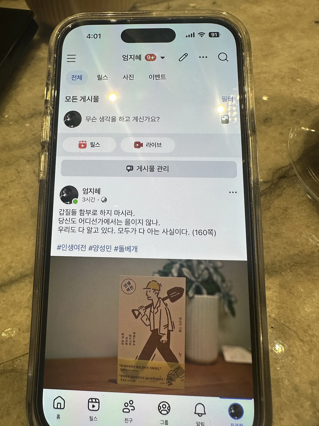 책으로 만난 것은 2019년. 우연히 선물 받은 책이 ”태도의 말들“이다. 책 초판 인쇄일이 2월 4일이고 인스타그램 포스팅이 4월 26일인 거 보면 신간이었다. 마치 주문한 책처럼 표지부터 모든 페이지가 내가 하고 싶은 말들만 고스란히 모아둔 책이었다. 많은 사람들에게 다양한 의도(?)로 선물을 했다. 너무 무성의한 J에게는 반성하라고 ( 반성했기를), 자신감이 없는 P에게는 하고 싶은 말하고 살라고. 그리고 당시 인사부 직원이 말하길 회사 워크숍 선물로 나누어주게 했다고. 보통 워크숍 선물은 상품권이나 스벅쿠폰을 했었는데 다소 파격적인 선물이었다는 후기와 함께 사라진 내 기억을 되살려 주었다.