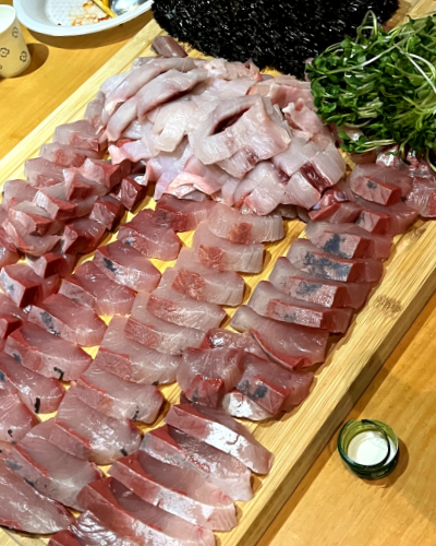 저녁은 숙소에서 먹어야 했다. 여행에서 밥을 대충 때우는 사람으로 생각했다면 오해다. 숙소에서 3만 원을 내면 방어회 파티에 참석할 수 있다는 공지를 봤다. 후기 사진으로 봐도 방어회와 수육, 가리비 등 양이 충분했고 무엇보다 사람들과 어울릴 수 있는 기회였다. 잠시 잊었던 뉴욕 여행으로 돌아가자면, 여행하는 동안 동행을 구할지 말지 고민하던 시기였다. 여러 관점에서 뉴욕을 뜯어볼 수 있다는 장점도 있으면서 어색한 분위기를 풀어보려는 나를 상상하자 피곤하기도 했다. 전주에서 낯선 사람들과도 어울리면서 천천히 생각해 볼 요량이었다.
