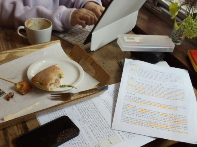 약속보다 30분이나 빠른 오전 10시 30분에 카페 입구에서 마주쳤다. 카페로 가는 길 내내, 미리 음료를 주문하고 질문지를 세팅해두려는 나의 계획이 유쾌하게 무너진 순간이었다. 통창으로 쏟아지는 가을의 붉고 노란 계절감을 느끼며 자리를 잡았다.