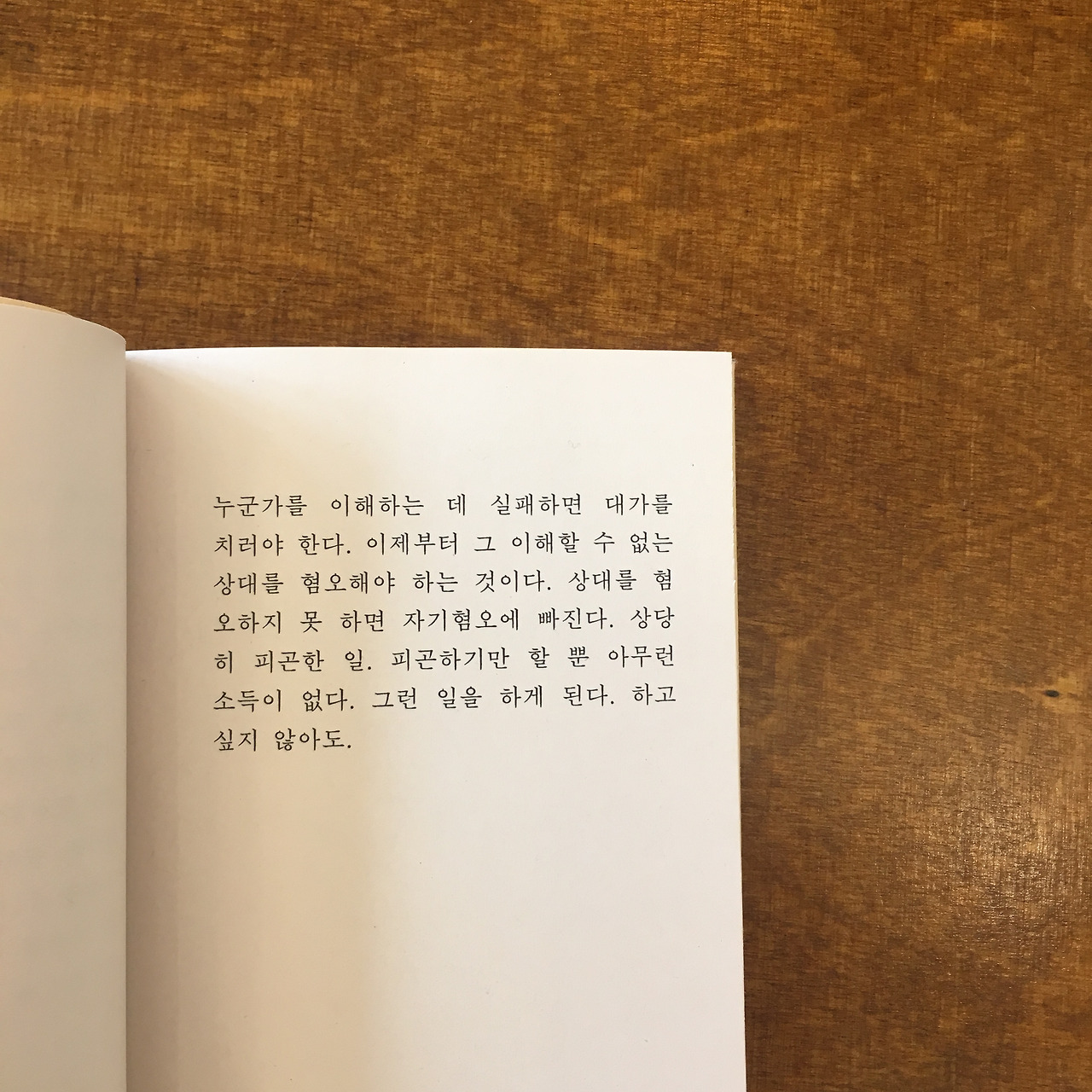 우리는 항상 이해하고자하는 욕구에 휩싸인다. 현재 상황을 이해하고자 하는 마음. 상대방을 이해하고자 하는 마음. 인간에게 가장 미숙한 점은 상대방을 있는 그대로 받아드리지 못하는 부분이라고 생각한다. 관계 속에서 우리는 많은 상처를 주고 받는다. 그 근원에는 상대를 내 기준으로 이해하려고 애쓰고 있기 때문이다.