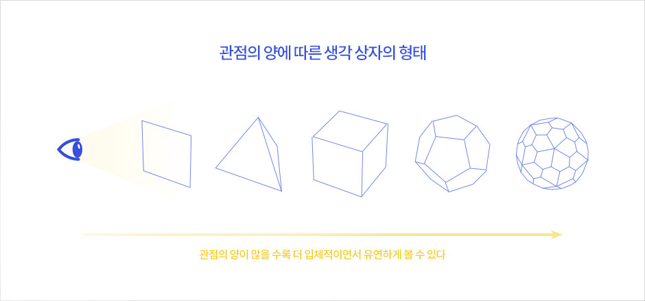 누구나 나름의 생각 상자를 구축하고 그 안에서 세상을 본다. 다면적 사고(입체적)는 내가 지금 보는 관점이 전부가 아니라는 것을 인정하는 태도에서 시작한다.
