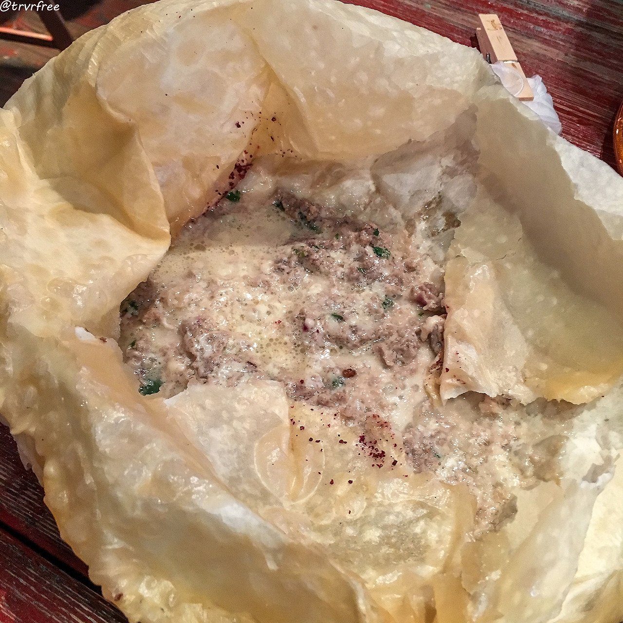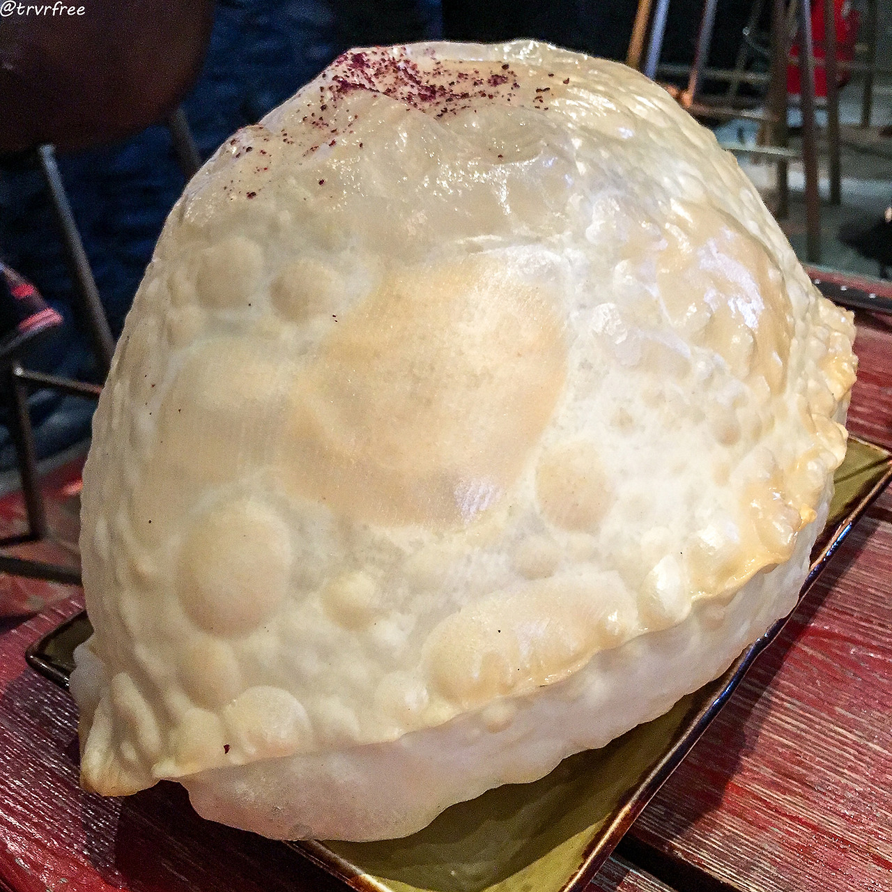 조지아식 군만두라는 '체브레키' 정말 강력 추천하는 메뉴이다. 보는 재미와 먹는 재미 둘 다 쟁취할 수 있는 음식이다. 부풀린 공갈빵처럼 생긴 체브레키를 식탁에 놓을 때 생애 처음 보는 비주얼이라 감탄사가 저절로 나왔다. "우와 ~" 체브레키를 잘라서 속 재료와 함께 뜯어먹으면 맛에 한 번 더 "우와 ~" 하게 된다.