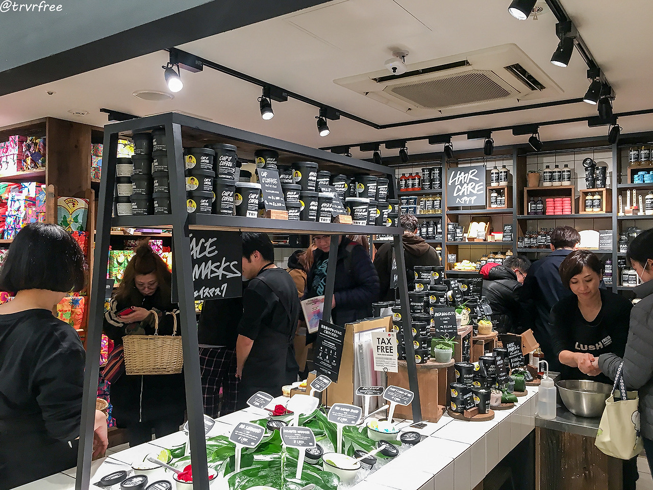 하카타역 지하 일대에는 큰 규모의 쇼핑 상가가 자리 잡고 있다. 그중에서 LUSH는 한국보다 훨씬 저렴한 가격에 구매할 수 있는 탓에 항상 관광객들로 붐빈다. 부리나케 들러 마스크 팩, 스크럽 제품, 비누, 바디 스프레이 등 갖가지 제품을 구매하였는데 한국인 종업원이 있어 일본어에 능통하지 못해도 큰 문제없이 제품을 둘러보고 구매할 수 있어 좋았다.