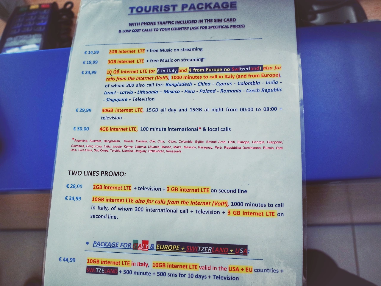이태리에서 기본 6G를 사용할 수 있고 EU 국가에서 4G를 더 사용하거나 이태리에서만 4G를 더 사용할 수 있다. 즉, 아내와 나는 이태리만 있으니 총 10G를 사용할 수 있었다.