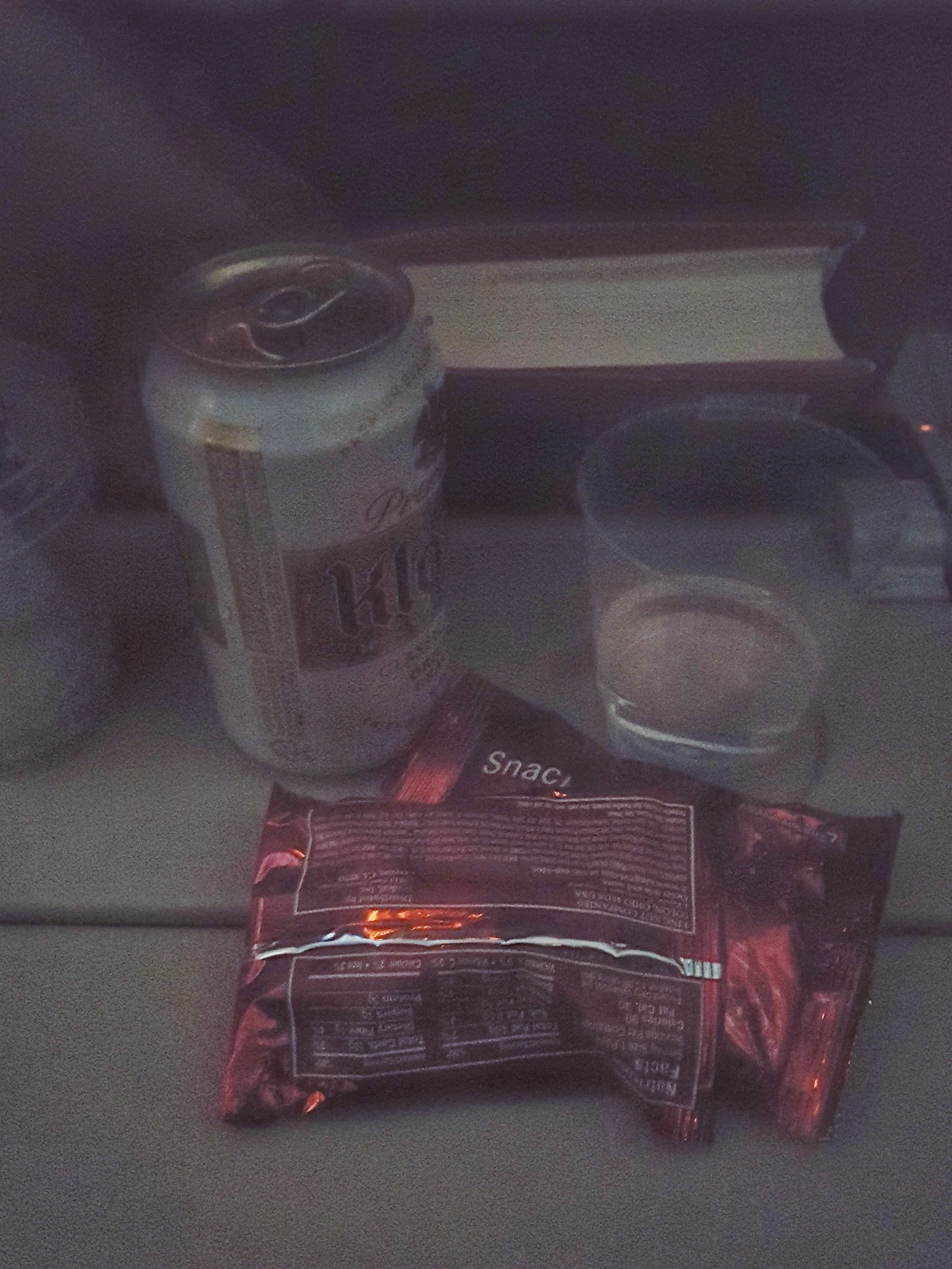 두 번째 기내식을 받기 전 아내는 자고 있었고 영화를 보던 나는 맥주를 추가로 부탁하여 마셨다. (자는 사람이 많아 기내 불을 꺼놔서 사진이 많이 어둡게 찍혔다)