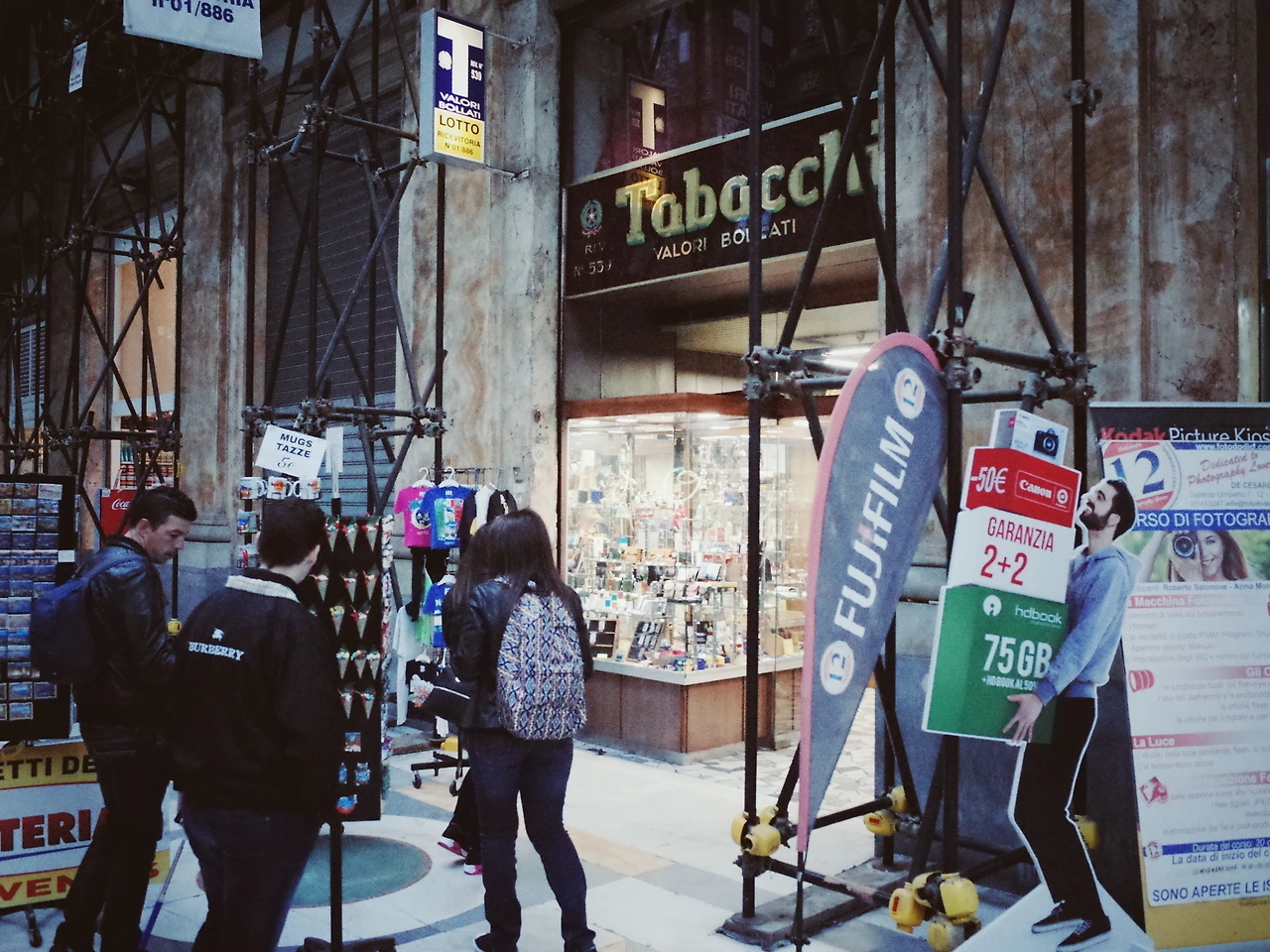 갤러리 내에 Tabacchi라고 쓰인 잡화점에서 표를 팔고 있는데, 보통 다른 곳에서도 이 Tabacchi가 표를 파는 경우가 많다. 우리나라로 치면 버스 정류장 근처에서 담배, 복권, 표 등을 파는 잡화점이라고 생각하면 될 것 같다.