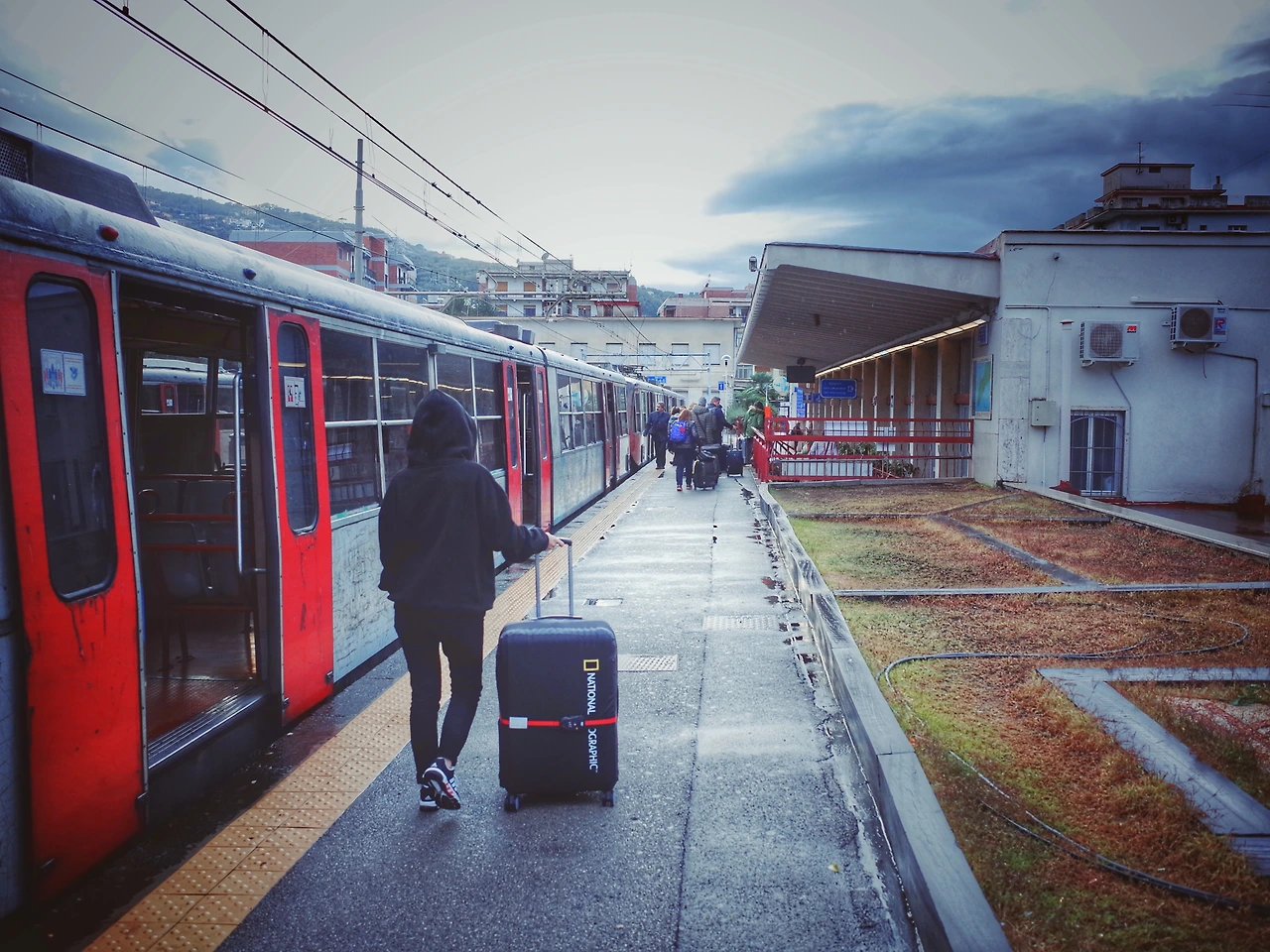 사철은 확실히 낡긴 했지만 우리나라 경전철 느낌이었고, 종점역인 데다 비수기라 그런지 사철은 자리가 여유로웠다. 우리는 짐도 있고 해서 제일 뒤쪽 칸에 타서 혹시나 하는 마음에 케리어를 손잡이에 가지고 갔던 와이어로 묶어 두었다. 가르발디 역에서 많은 사람들이 타긴 했지만 다른 여행 후기들에 나오는 것처럼 지옥철 수준까지는 아니었다. 지하철 내에서 따로 구걸하는 집시는 나폴리에서 소렌토로 이동하는 동안은 보지 못했다.