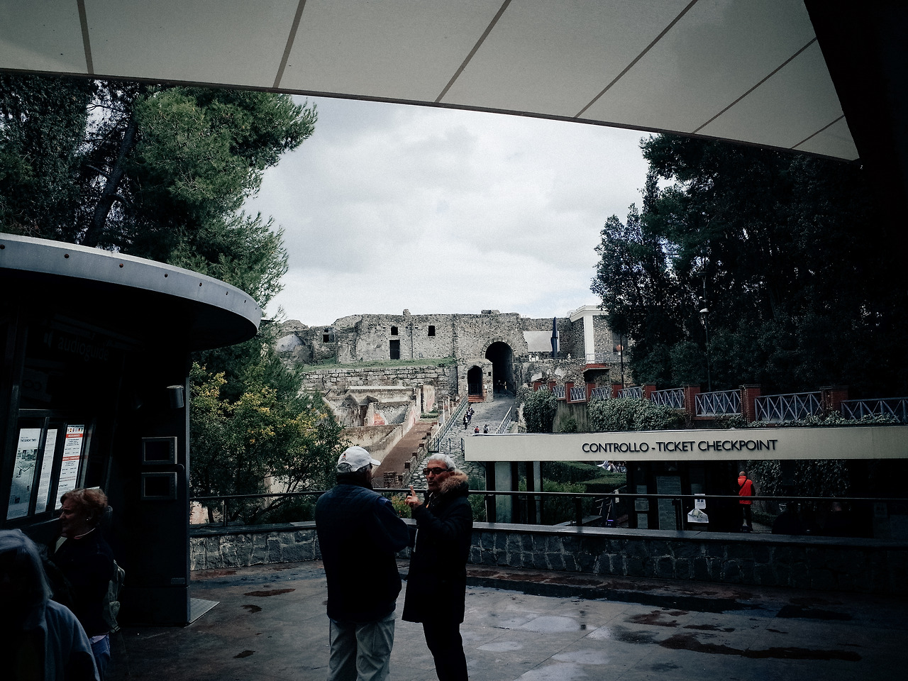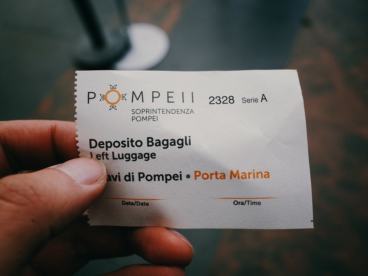폼페이에는 11시쯤 도착을 했는데, 역에 내려 계단을 내려오면 가방 보관소가 있다. 하지만 유료이며 폼페이 유적지 입구까지 가면 무료 보관소가 매표소 바로 앞에 있다. 역사에서 계단만 조금(1층 높이) 오르내리면 되고, 역에서 입구까지 걸어서 3분도 안 되는 거리기 때문에 무료 보관소를 추천한다. 화장실도 사철 역은 유료이고, 폼페이 유적지 매표소 옆에 있는 곳은 무료이다.