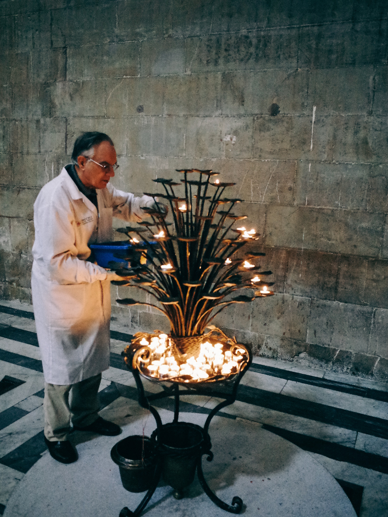 두오모 꼭대기에서 경치를 감상하고 내려와 성당 내부를 구경하는데, 헌금을 하고 초를 올려놓는 곳이 있어서 아내와 함께 각각 초를 올리며 사진도 찍었다.