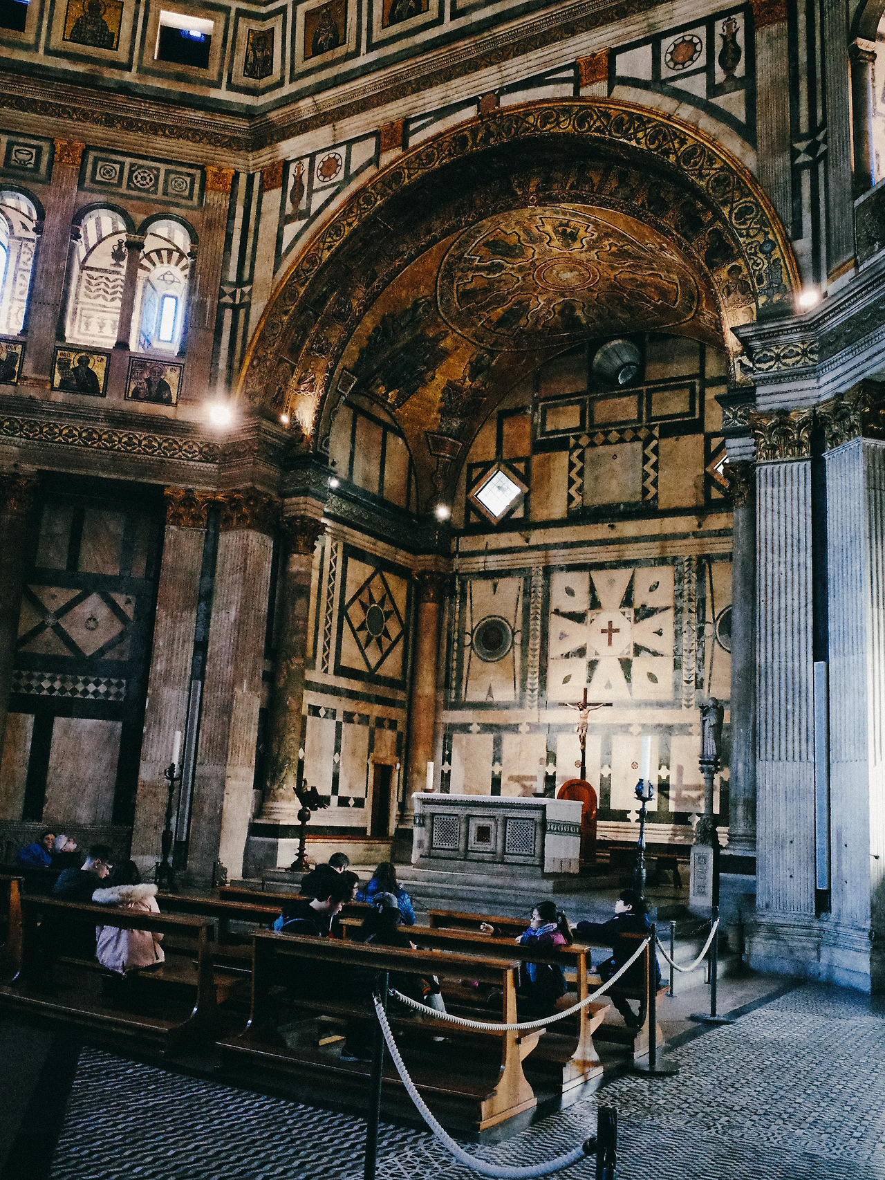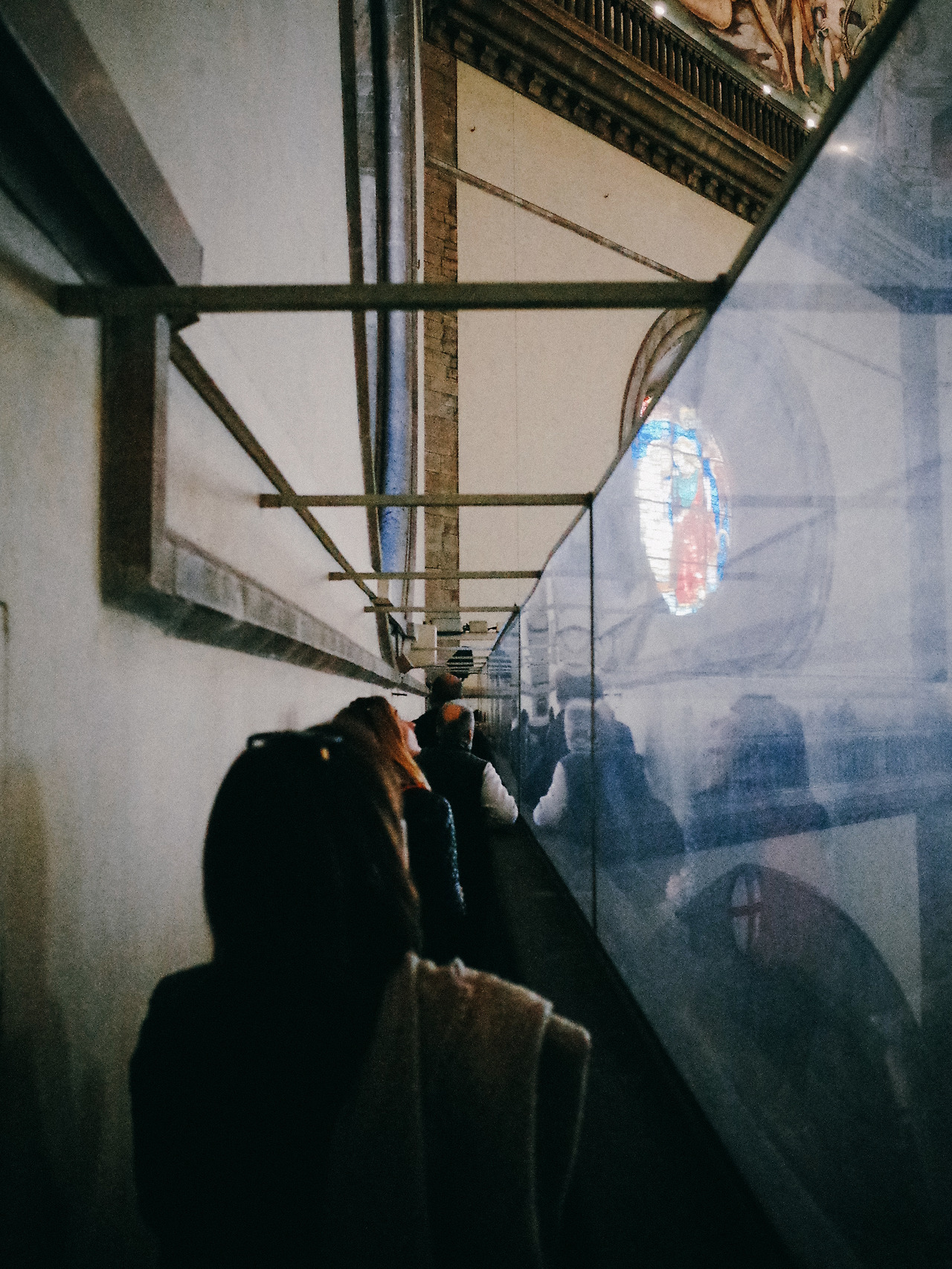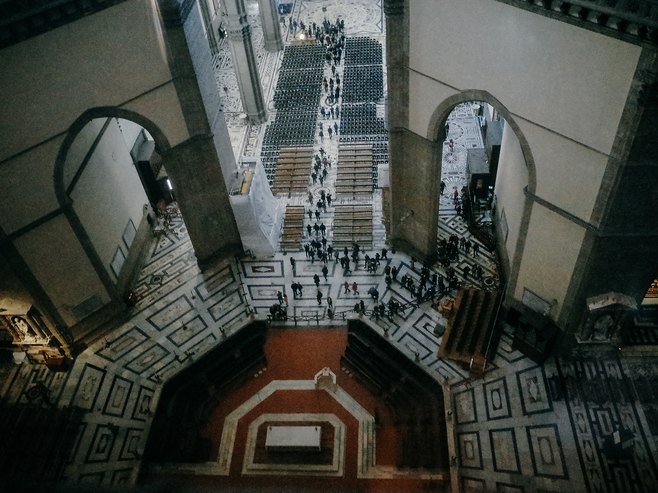15분 정도면 두오모 꼭대기에 도착할 수 있고, 중간에 돔을 오르기 전 천장 둘레길이 있어 천장화나 아래 성당 내 모습을 볼 수 있어 좋았으나 고소공포증이 있다면 무서울 수 있다.