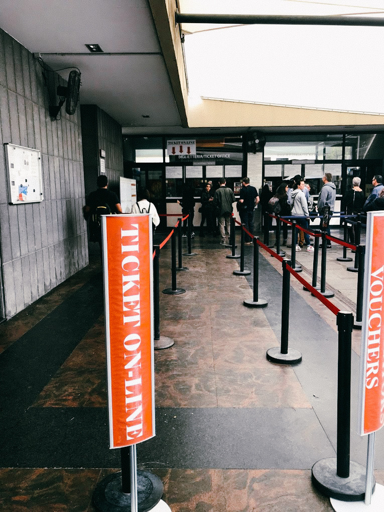 폼페이 유적지도 아르떼 카드로 무료로 입장할 수 있는 곳이지만, 입장권은 따로 매표소에서 아르떼 카드를 보여주고받아야 한다. 아르떼 카드를 통해 표를 받는 줄은 일반 매표소 줄과 달리 아래 사진에서 보이는 왼쪽 빨간색 줄이다.