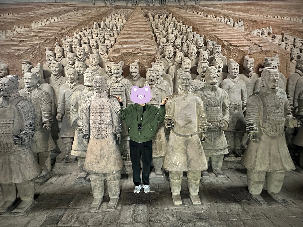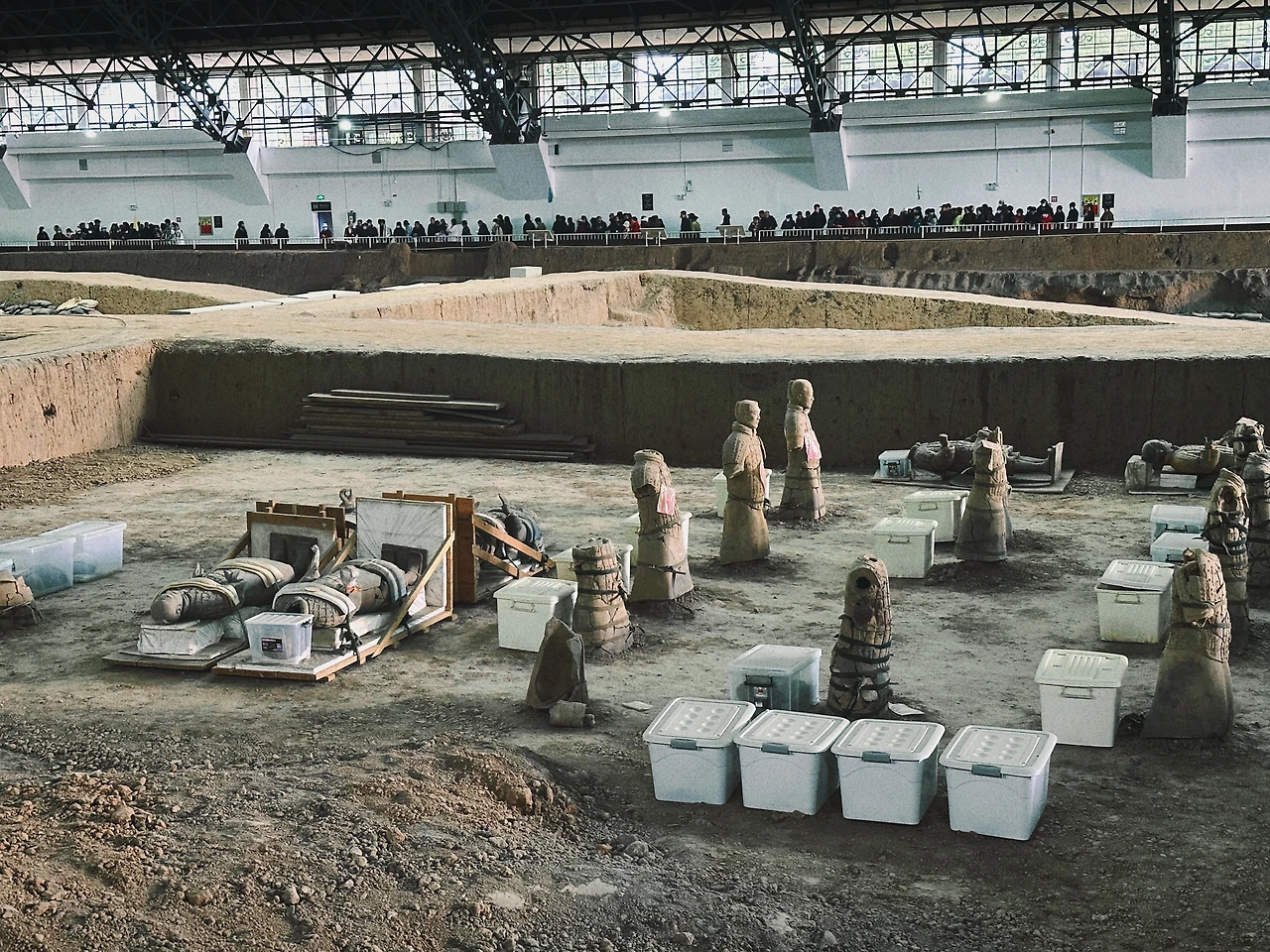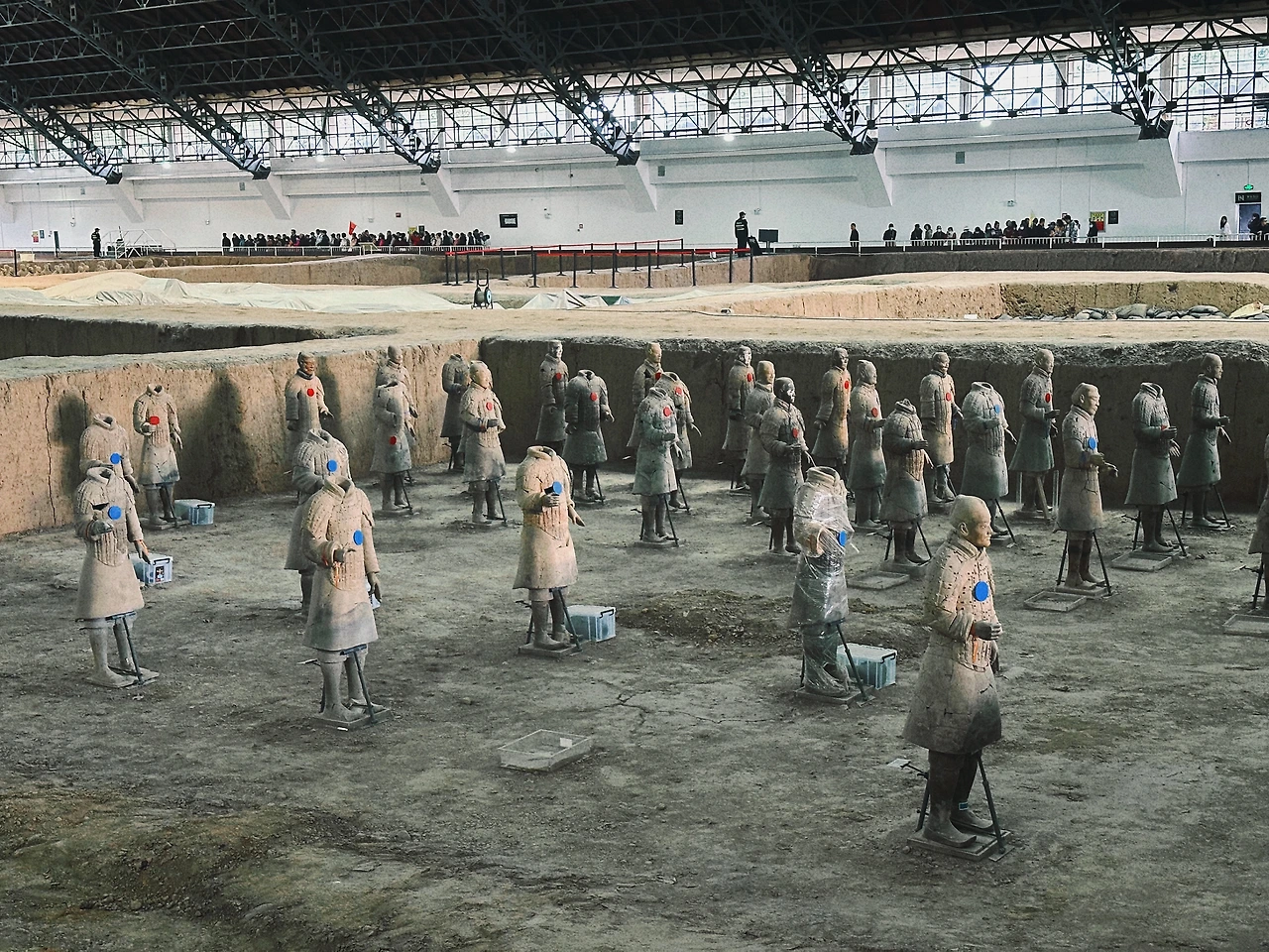 도착했을 때 긴 대기 없이 바로 입장할 수 있었고, 병마용 갱에 들어서자 어마어마한 규모의 발굴 현장이 펼쳐졌다. 이곳은 현재도 발굴이 진행 중이며, 그래서 시안 대학교 고고학과가 유명해 우수 학생들이 실제 현장 실습을 나온다고 한다.