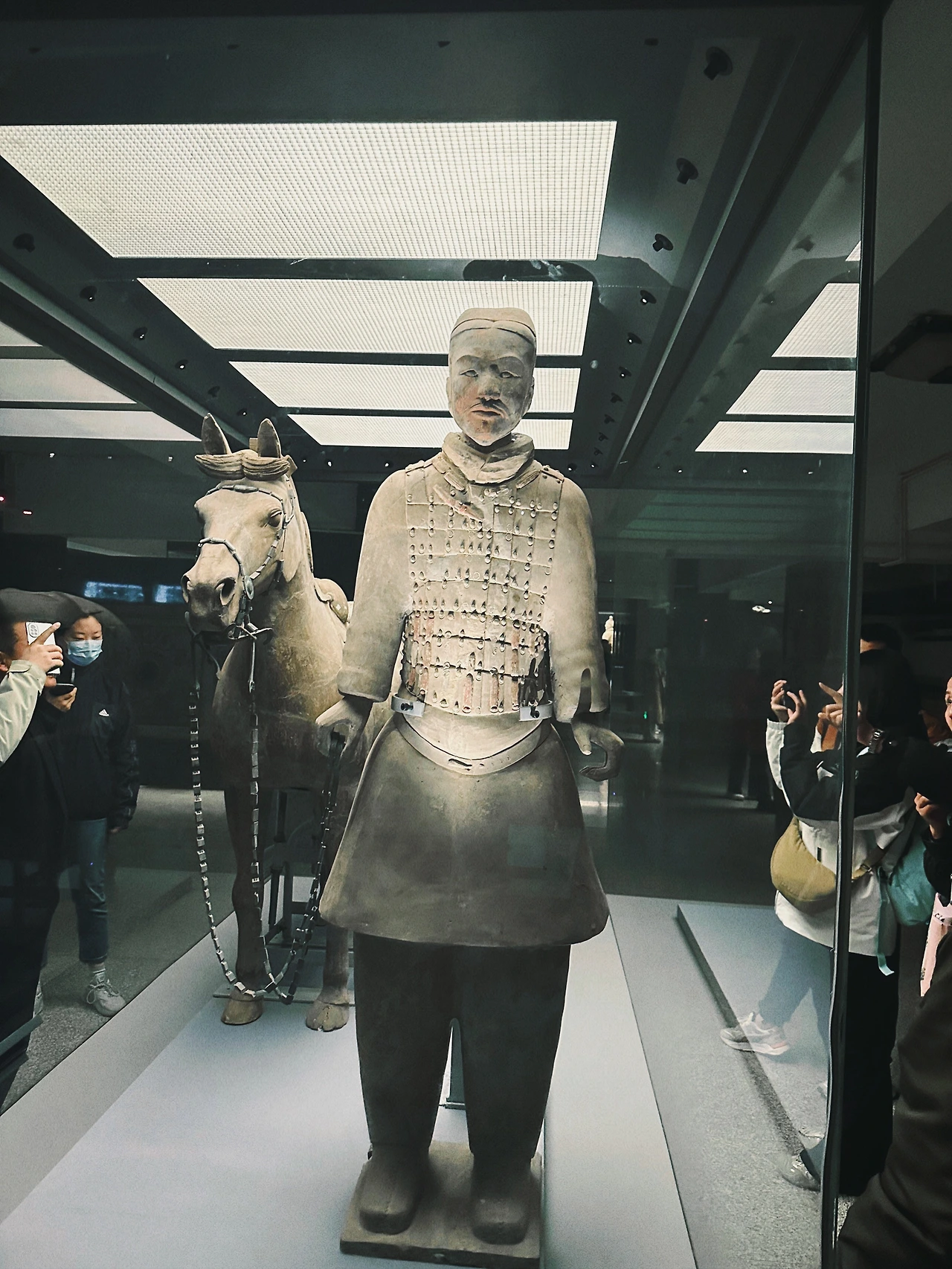 갑옷의 리본이 많을수록, 신발 앞코가 높을수록 고위 장교라는 점, 양손을 공손히 모으고 서 있는 형태의 병사 인형은 실제로는 칼을 집고 서 있는 장군이었다는 점이 인상적이었다. 진시황 시대에는 마구가 없어 맨몸으로 말을 타야 했기에, 기병대 병사들은 체구가 작고 가벼운 옷차림을 했다고 한다. 이런 세세한 설명 덕분에 병마용이 단순한 인형 군단이 아닌, 진시황 시대의 실제 군대처럼 느껴졌다.