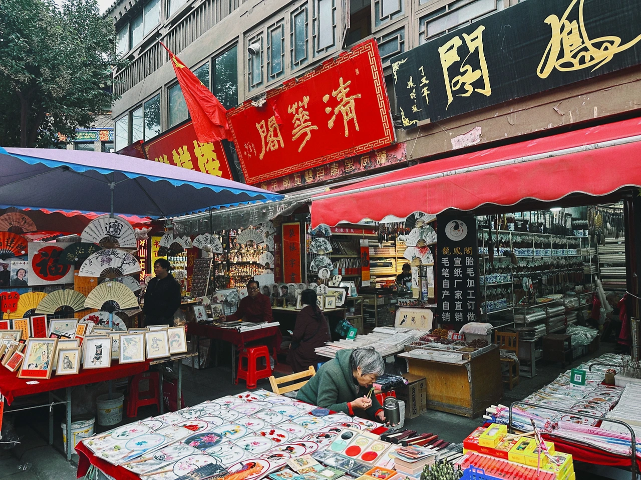 유튜브에서 본 문인거리는 작가들이 글과 그림을 그리는 부스가 있는 박람회 같은 분위기였는데, 실제 첫인상은 관광지 기념품점이 줄지어 있어 당황스러웠다. 다행히 계속 걸어 들어가니 안쪽에 기대했던 문인들의 공간이 별도로 있었다.