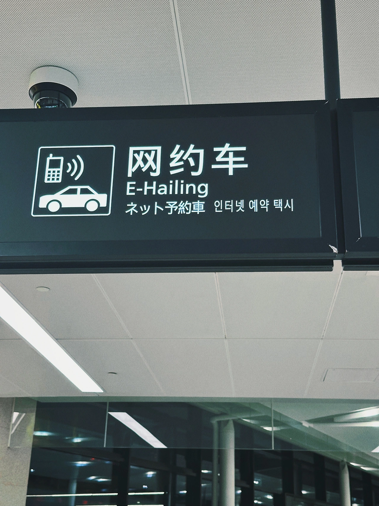 eSIM을 미리 설치해둔 덕에 도착하자마자 디디(DiDi)를 호출할 수 있었다. 늦은 시각이었지만 데이터는 빠르게 연결됐고, 지하의 ‘E-Hailing’ 구역으로 안내되는 길에도 한글로 ‘인터넷 예약 택시’라는 표지판이 붙어 있어 찾기 쉬웠다. 단, 타는 곳이 지하 주차장 구조라 복잡했고, 동시에 같은 시간대에 호출된 차량들이 몰려 기사님이 우리를 찾지 못해 전화를 걸어왔다.