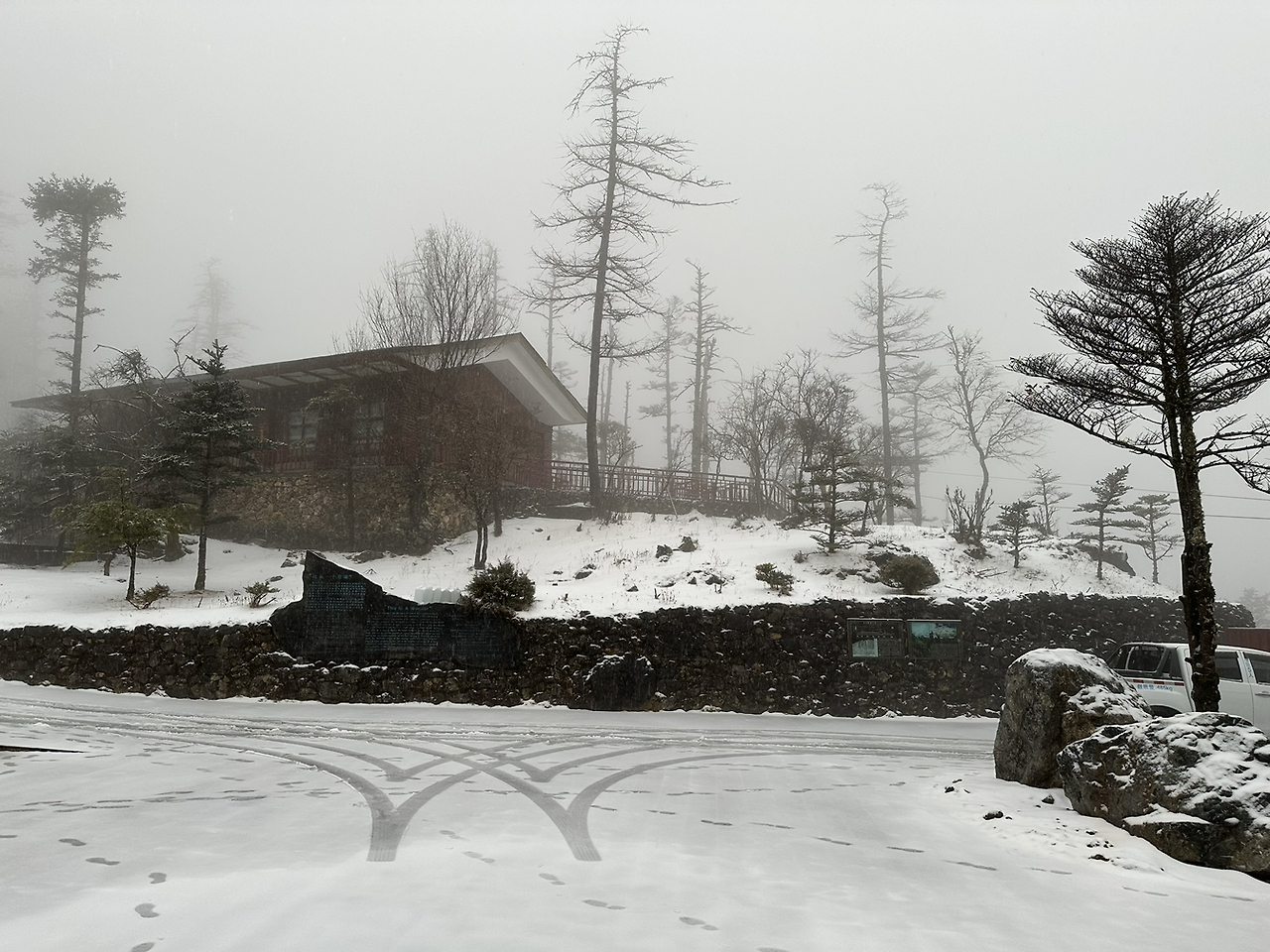 정상에 닿았을 땐, 산은 완전히 모습을 감추고 있었다. 안개, 눈, 그리고 하얀 공기만 가득했다. 산은 거기 있었지만, 볼 수 없었다. 리장 여행 후기를 보면 산소캔을 쥐고 힘겹게 오르던 전망대로 향하는 계단도 오르지 못하게 막혀있었다.