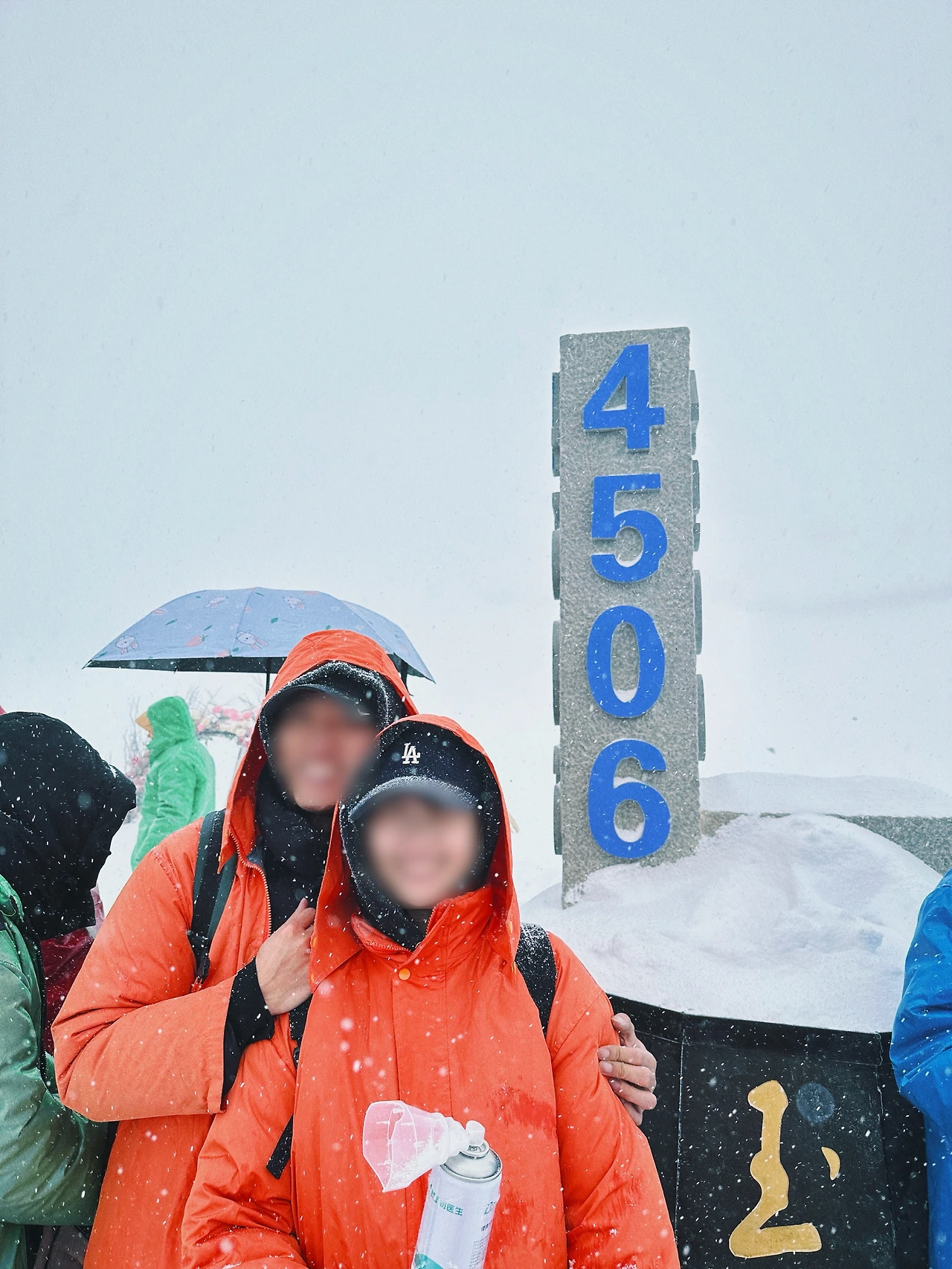 뭐 어쩌겠는가 자연이 오늘은 이 정도만 보여주겠다고 하는데. 눈이라도 즐기자 하면서 같이 간 친구와 즐겁게 산이 없는 옥룡설산에서 기념사진을 찍고 눈을 즐기며 놀았다.