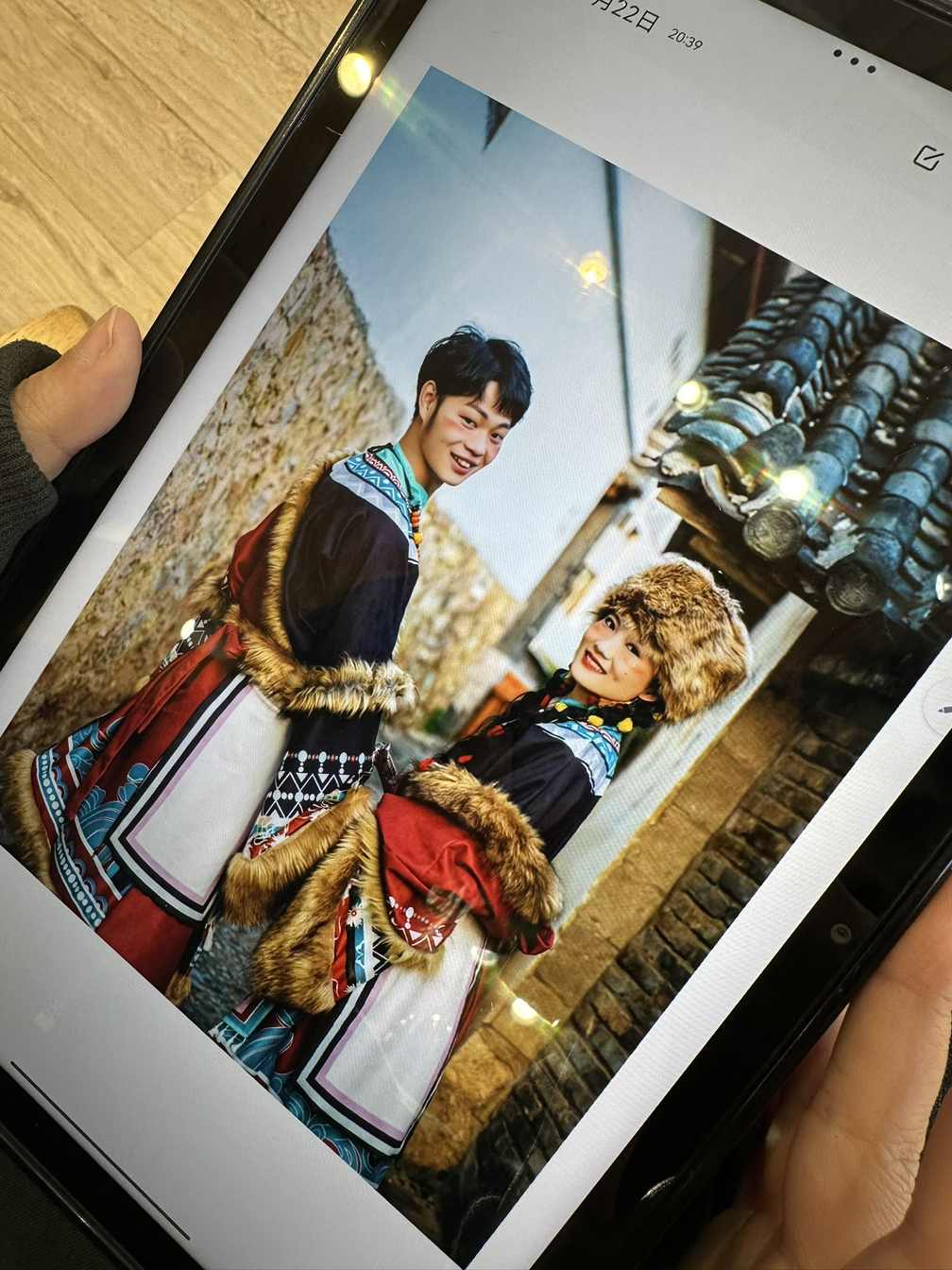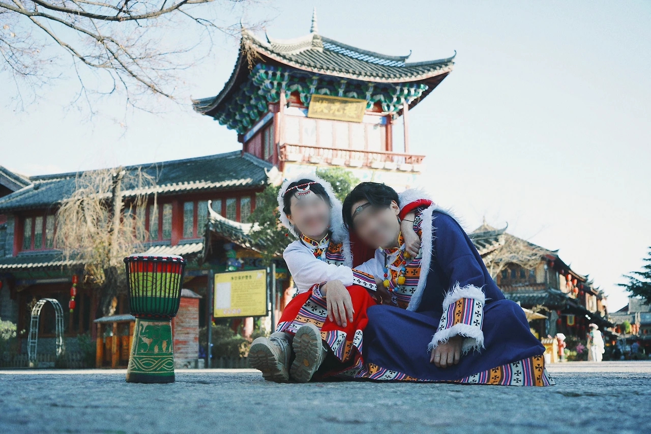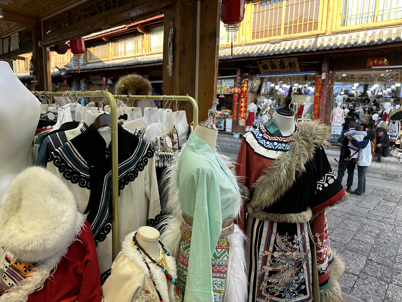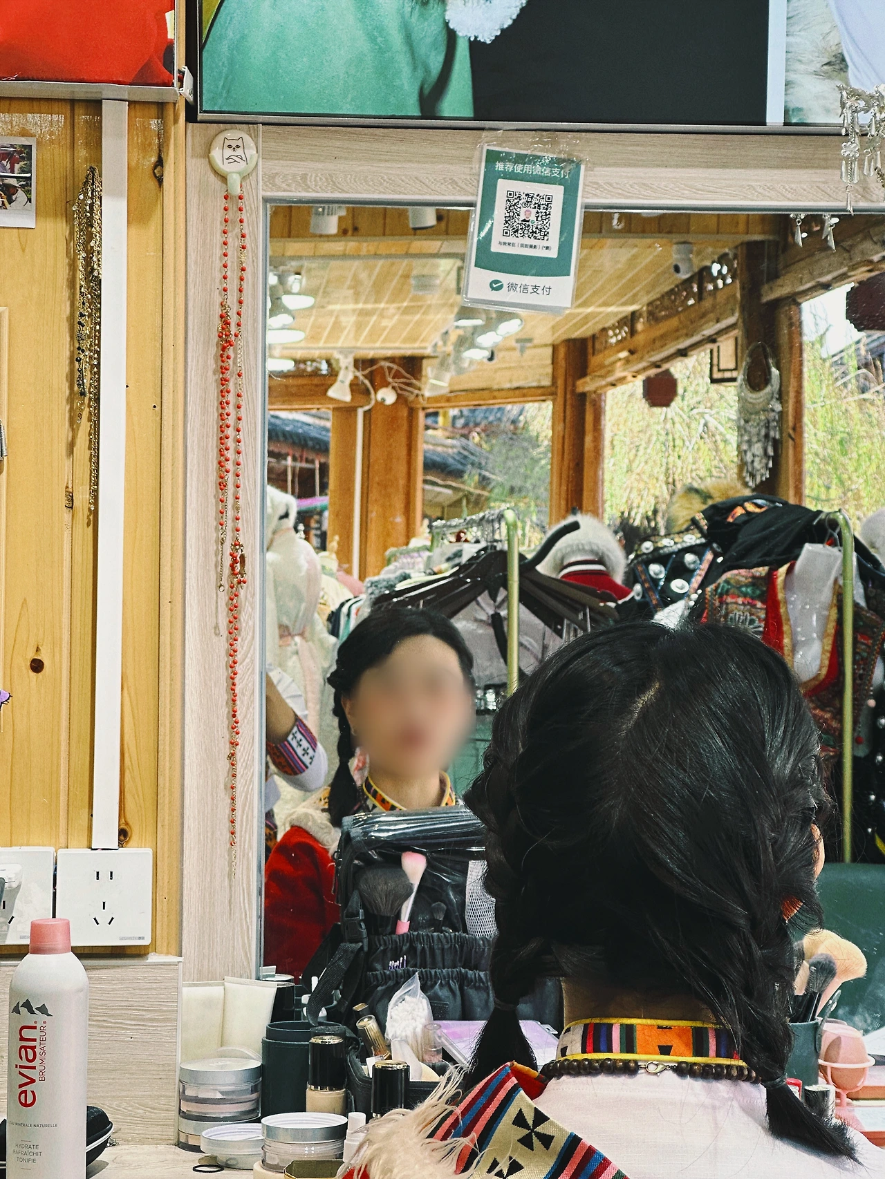 하루는 전통복 체험을 해보기로 했다. 한국의 한복 체험처럼, 중국에도 다양한 소수민족의 전통 복장을 입고 관광지에서 사진을 찍는 문화가 있었다. 당시엔 리장이 첫 중국 여행지였기에 이곳만의 특색이라 생각했지만, 나중에 보니 관광지마다 이런 전통복 체험이 하나의 유행처럼 자리 잡고 있었다.