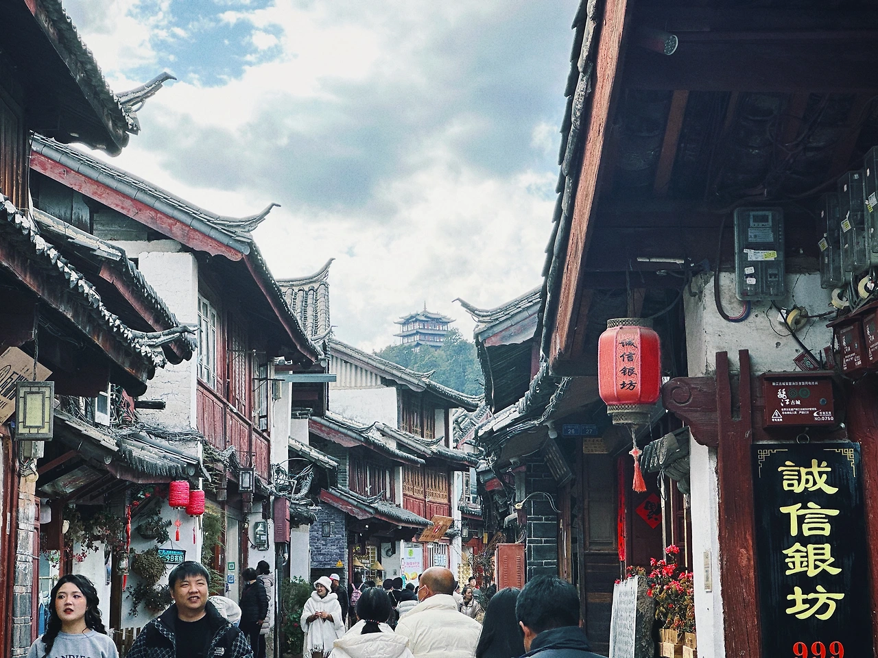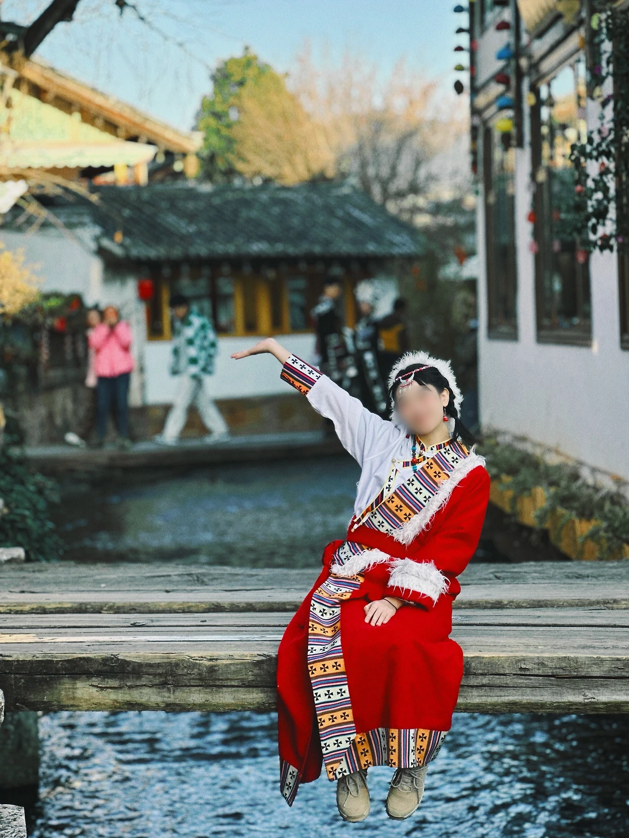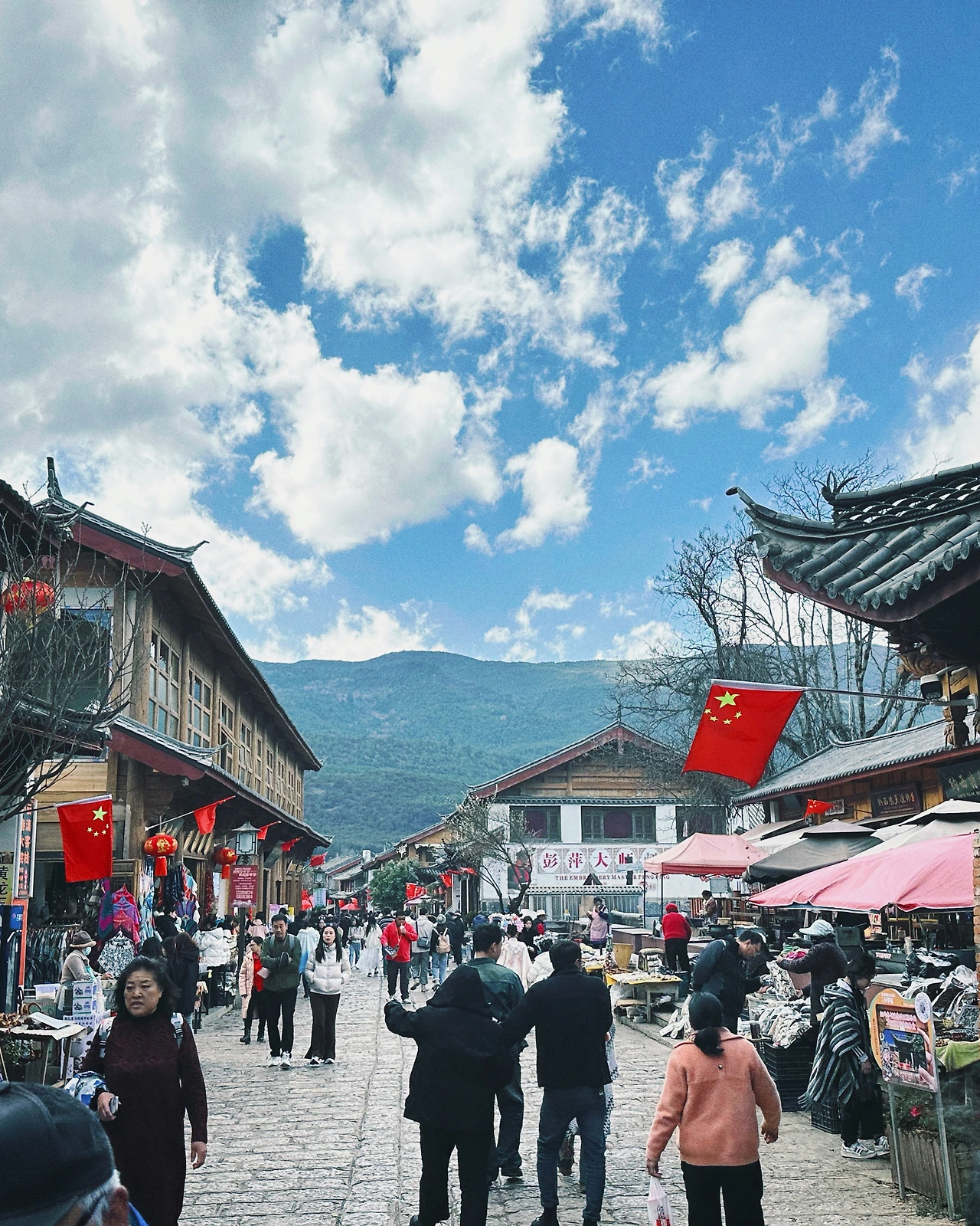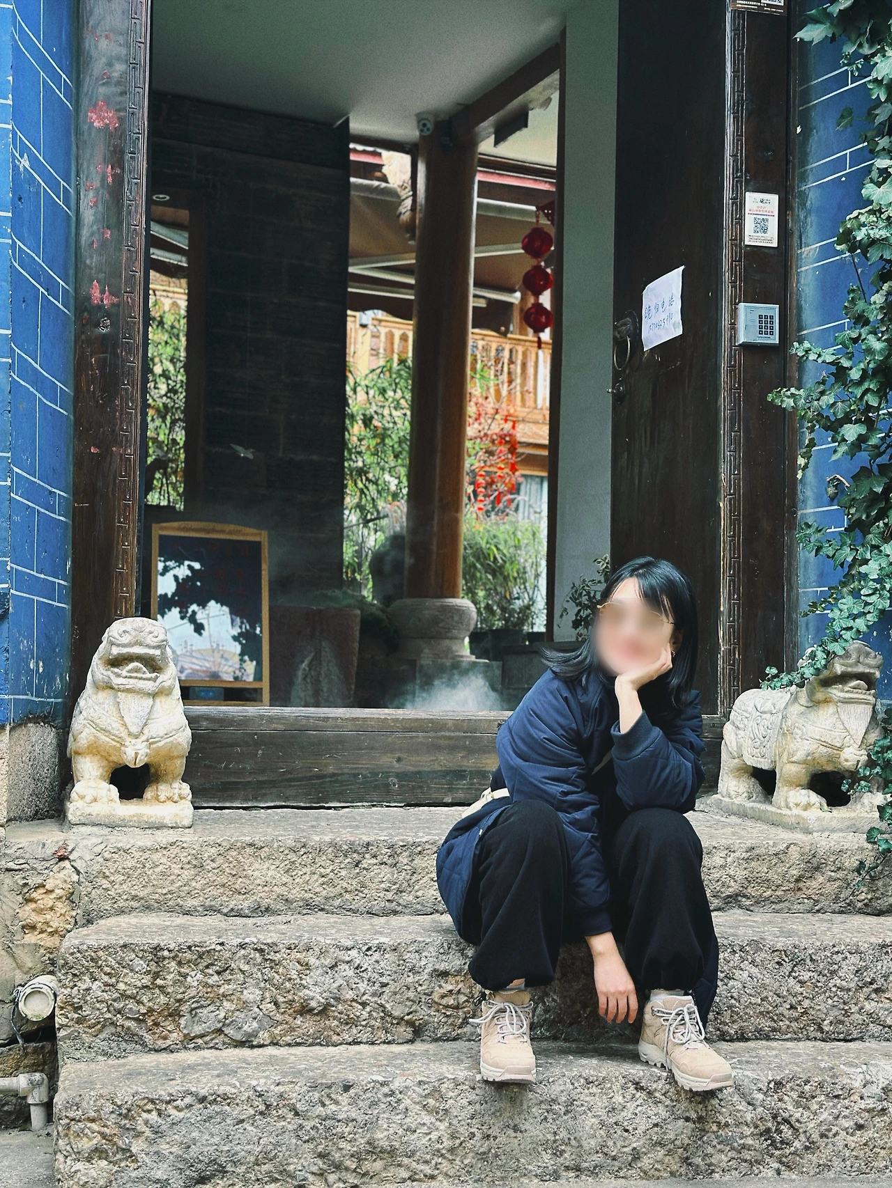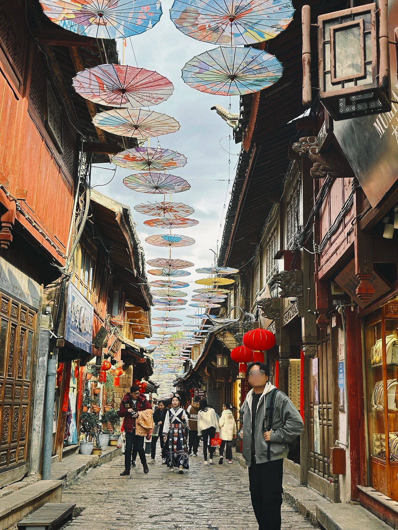 사진 촬영이 끝난 후, 옷은 가게 문 닫기 전까지만 반납하면 된다고 해서 그대로 입고 고성을 돌아다녔다. 골목마다 잠시 멈춰 사진을 찍기도 하고, 천천히 걸으며 시간을 보냈다. 그렇게 이국적인 풍경 속, 이국적인 옷을 입은 채 조용히 리장에 스며들었다.