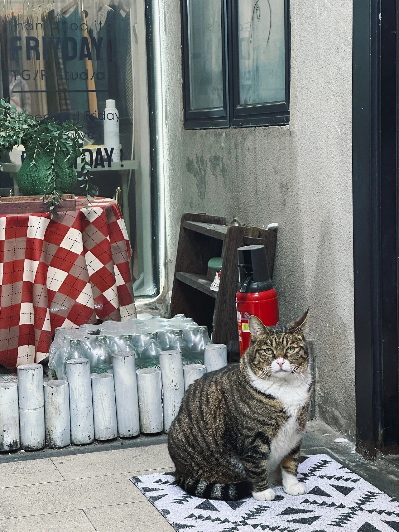 어느 상점은 고양이 한 마리가 묵묵히 자리를 지키고 있었고, 작은 상점들 사이로 오래된 가구와 따뜻한 조명이 스며 있었다. 화려한 듯 정갈한 찻잔들은 우리의 발길을 붙잡았고, 가로수가 아름다운 거리는 배경이 되었다.