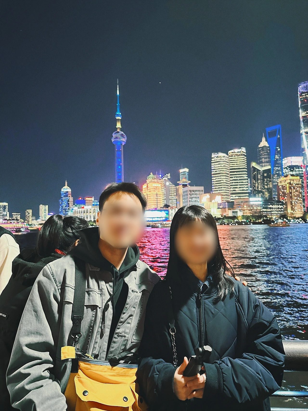 셀카를 찍으려던 순간, 한국어를 들어서일까 두 명의 중국 여학생이 다가와 사진을 찍어주겠다고 했다. 서툰 한국어와 손짓, 웃음. 언어보다 마음이 먼저였다. 덕분에 우리는 동방명주를 배경으로 한 사진을 남길 수 있었다.