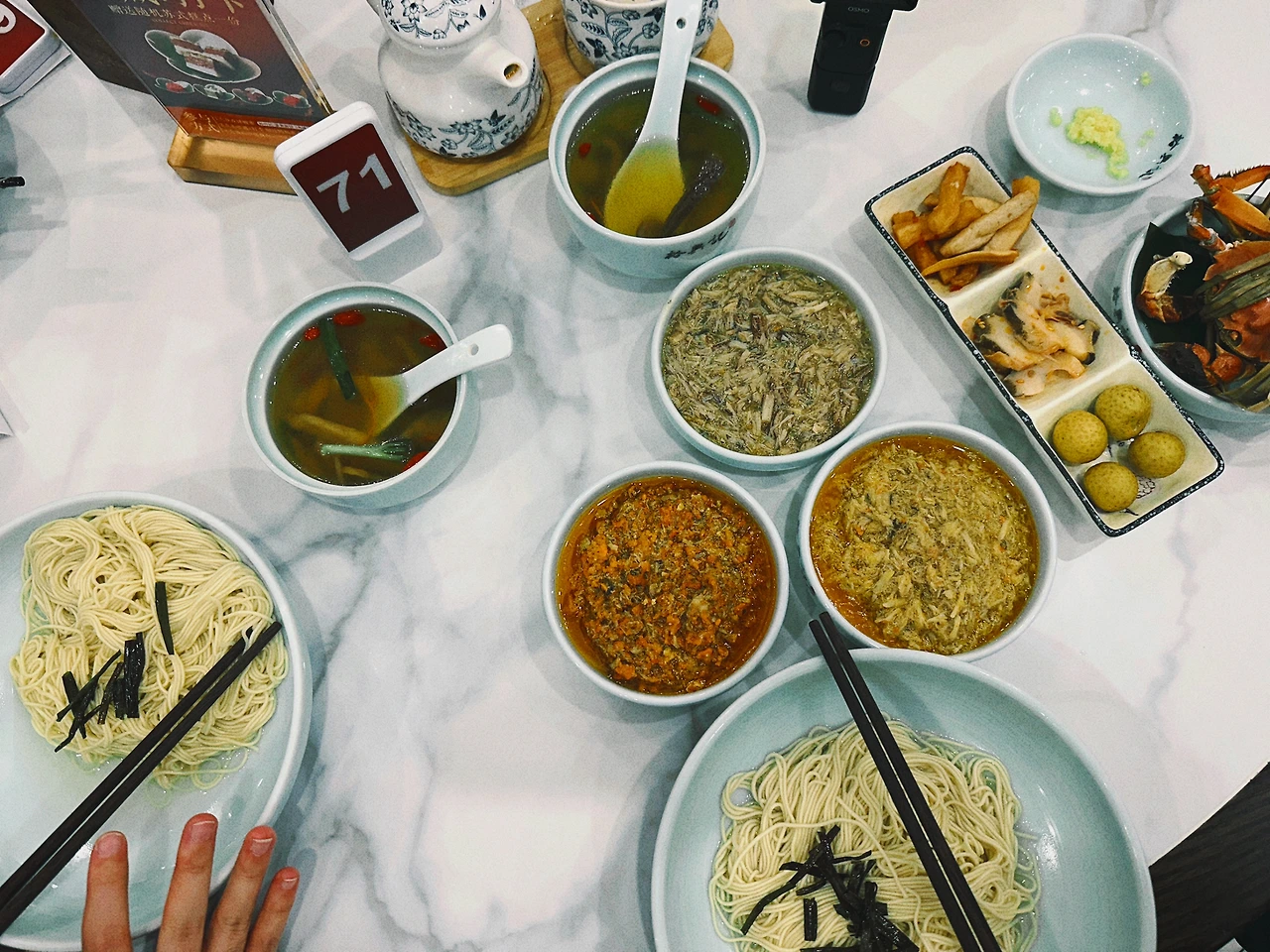 저녁으로는 와이탄에서 걸어서 갈 수 있는 게살 국숫집유흥기(裕兴记)를 찾았다. 가게 안은 사람들로 가득했고, 우리는 잠시 대기하다가 합석 자리로 안내받았다.